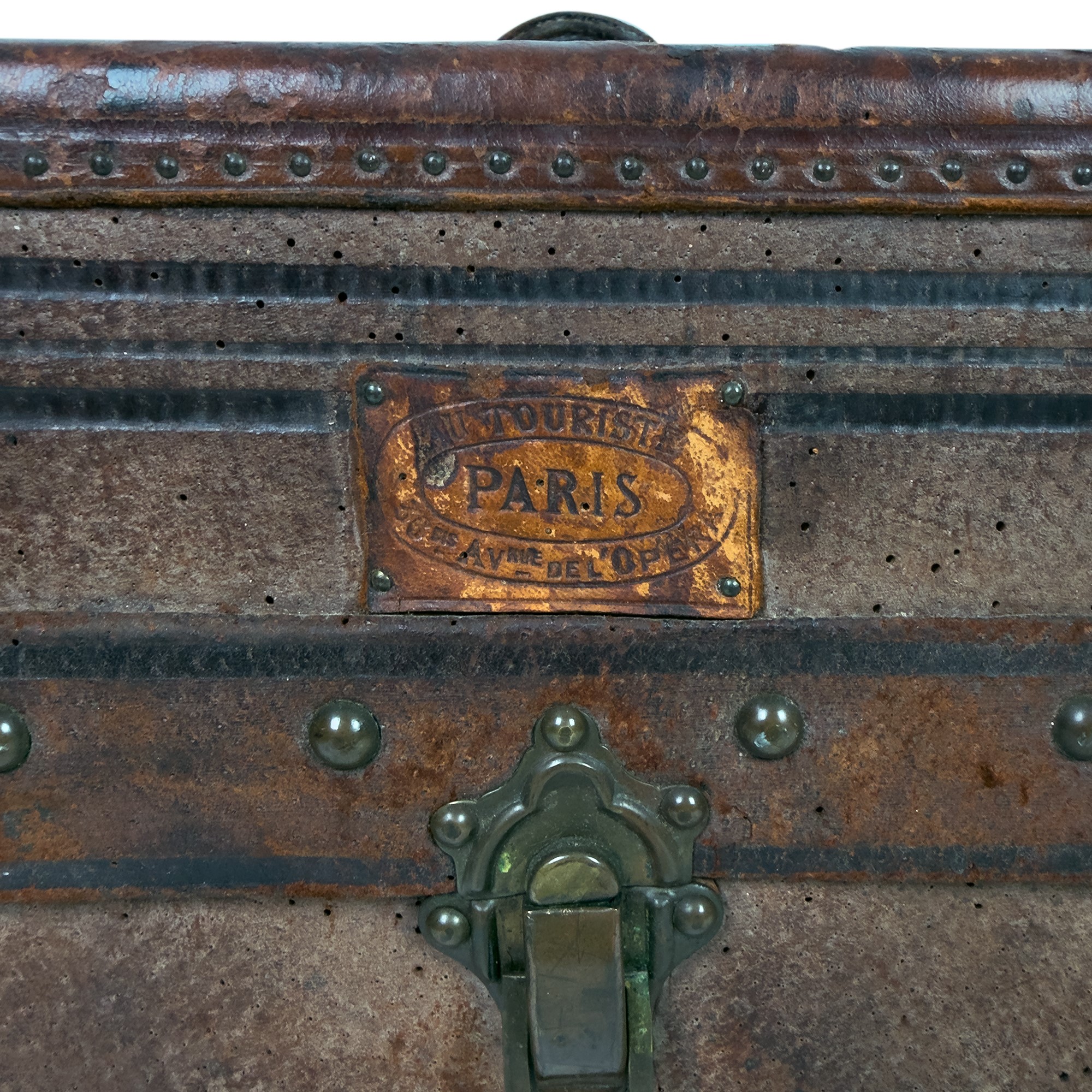 Boîte à chapeaux rivestita in cuoio, bottega parigina, Avenue de l'Opera, inizi del XX secolo