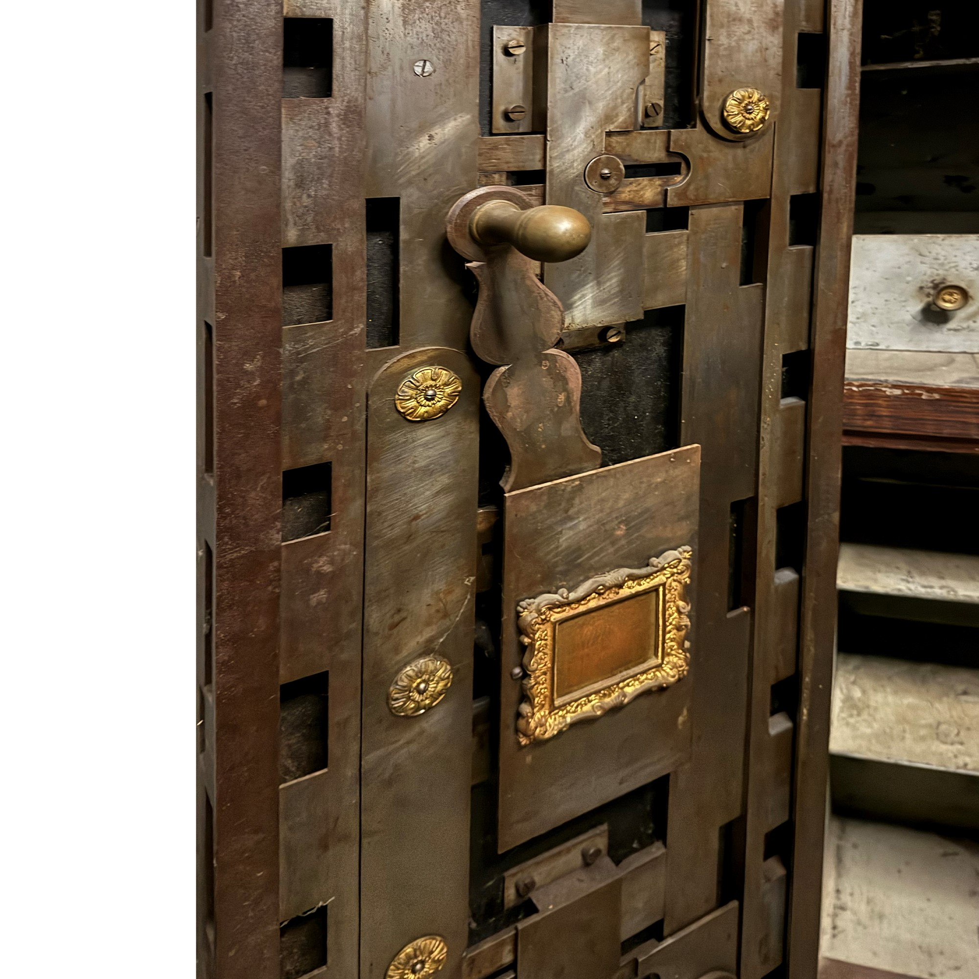 fronte a due ante; all'interno targa recante produzione e anno: Fabbro Meccanico Milano 1869, cm. 170x122x65