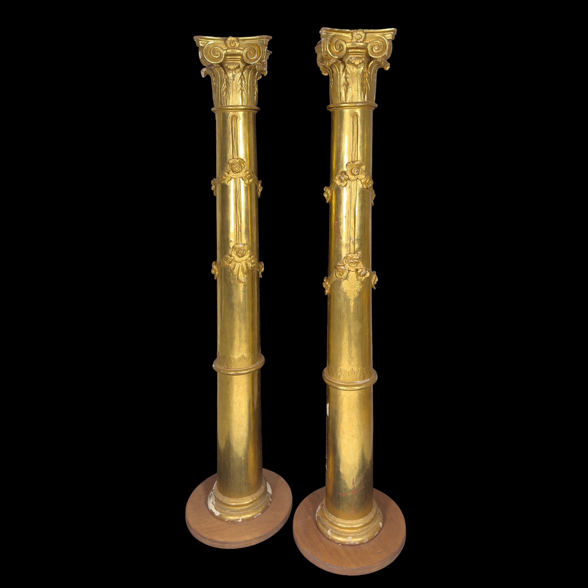 Coppia di colonne da parete in legno dorato, inizi del XIX secolo