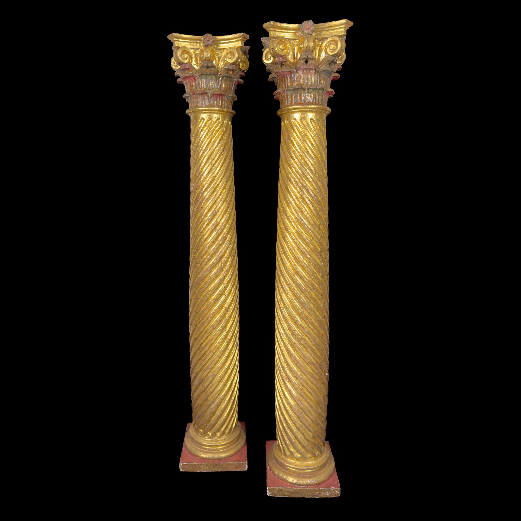 Coppia di colonne in legno dorato, XVIII secolo
