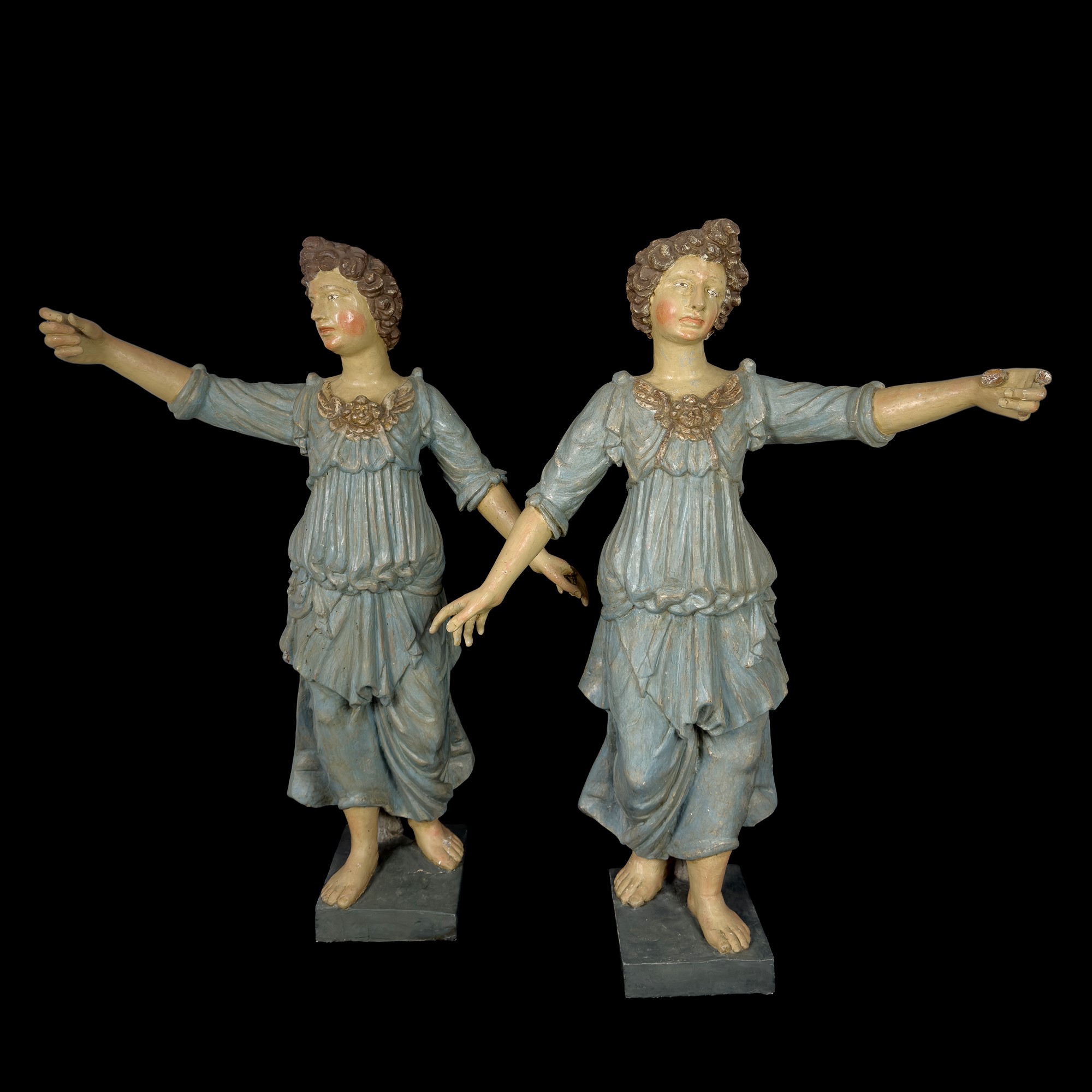 Coppia di sculture in legno laccato, XVIII secolo