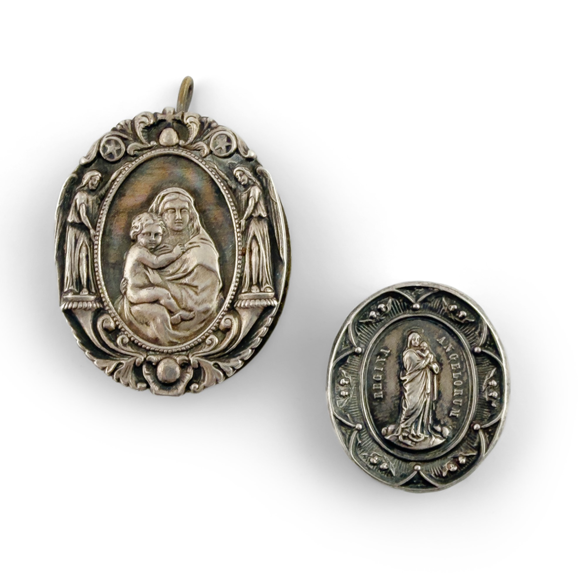 sbalzati a raffigurare la Vergine con Bambino, cm. 3,5x3; cm. 5x4