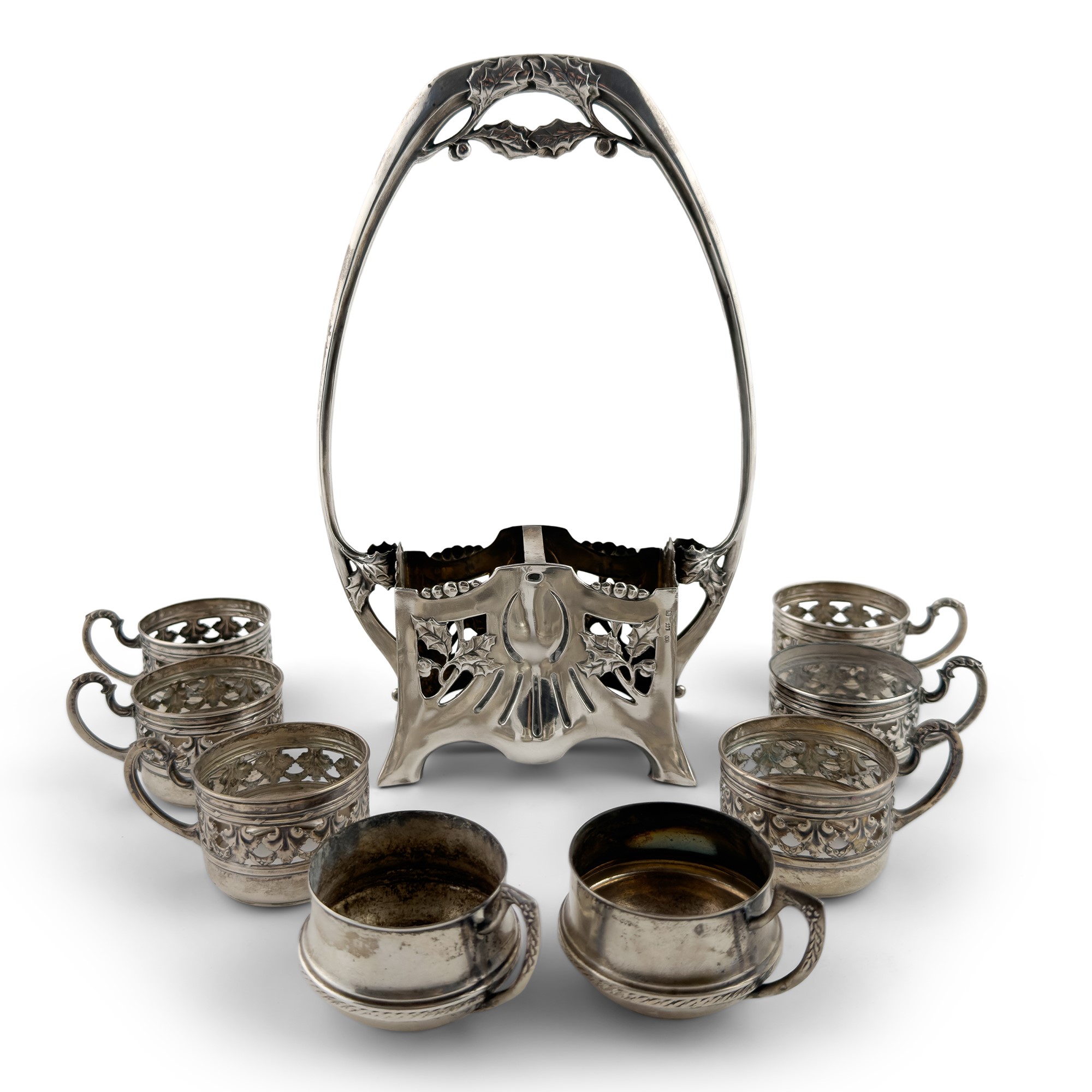 UNITO a otto porta-tazzine da caffè parimenti in argento, il fusto: h. cm. 26, peso complessivo gr. 260