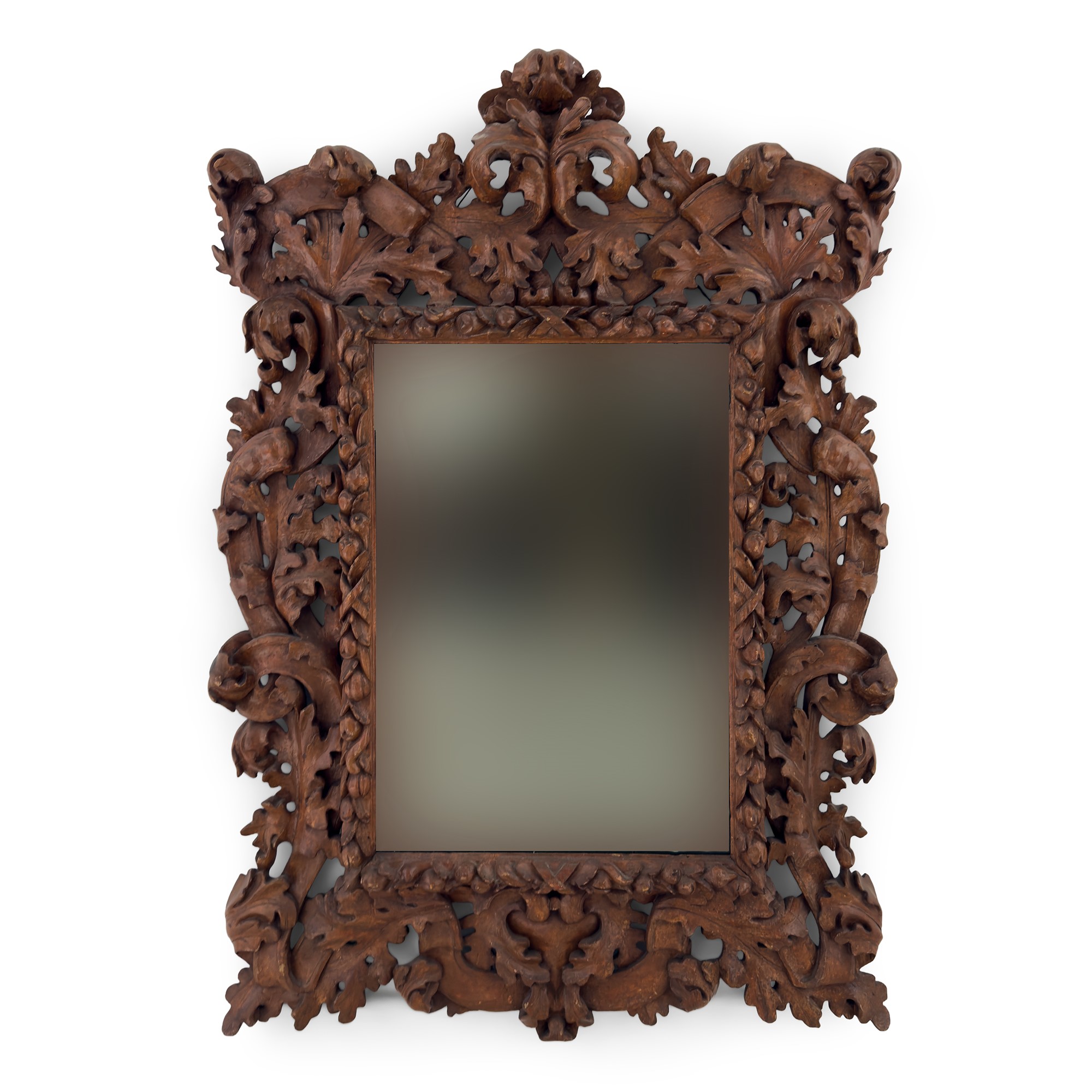 Grande specchiera in legno tinto a noce, Friuli, XIX secolo