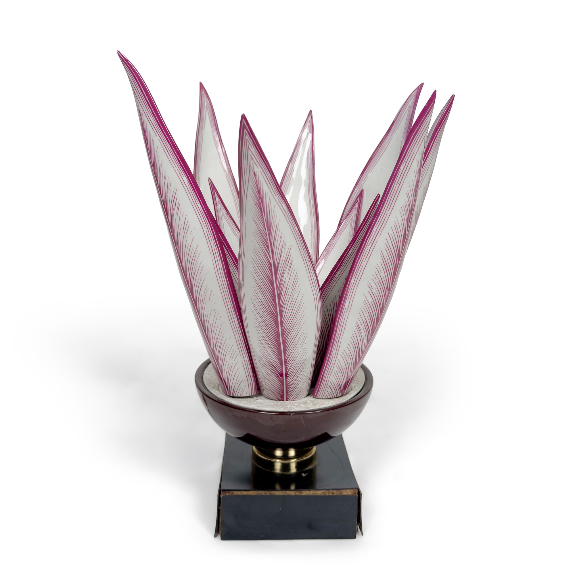 Lampada da tavolo con foglie in porcellana bianca e viola, Prato, Mangani