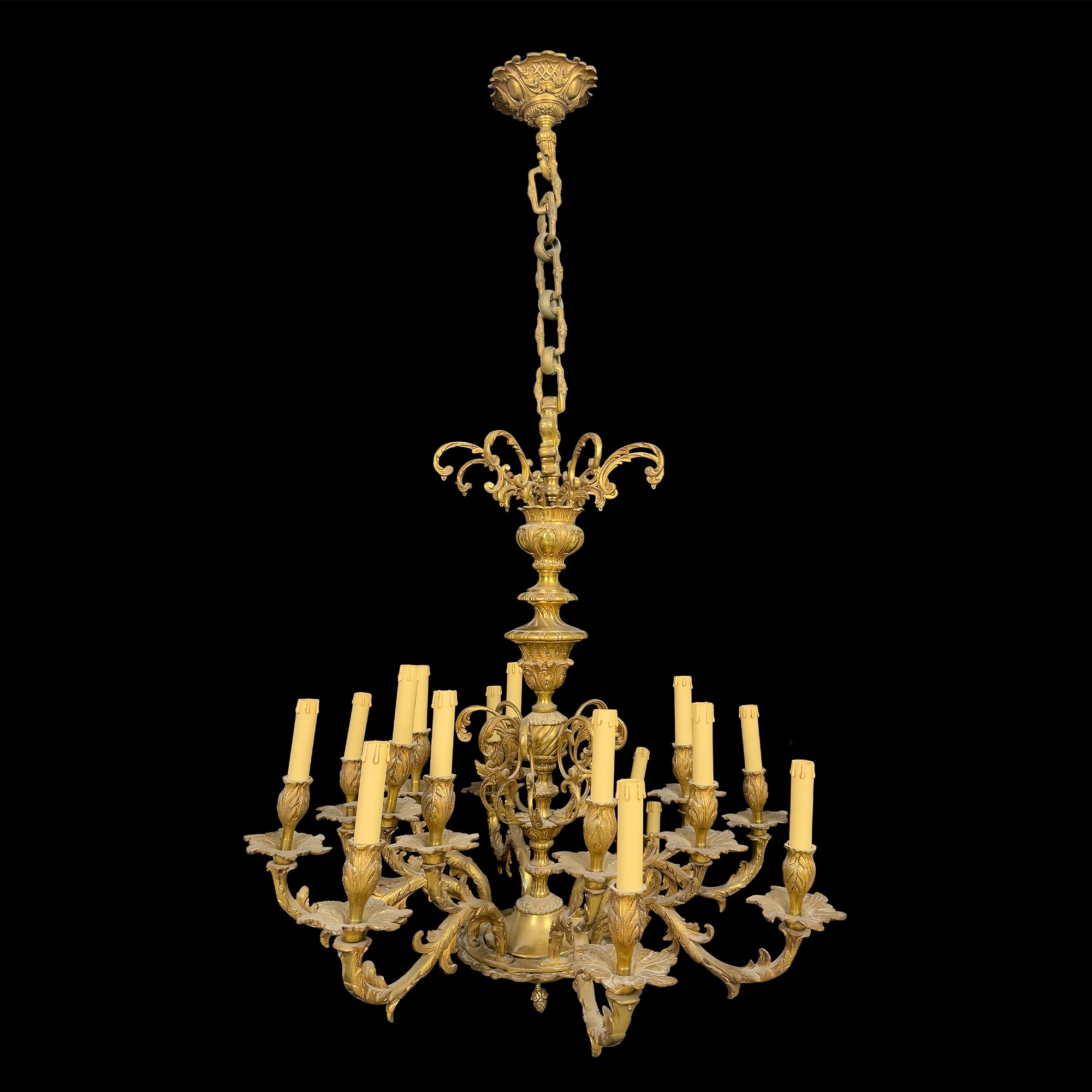 Lampadario in ottone a sedici luci