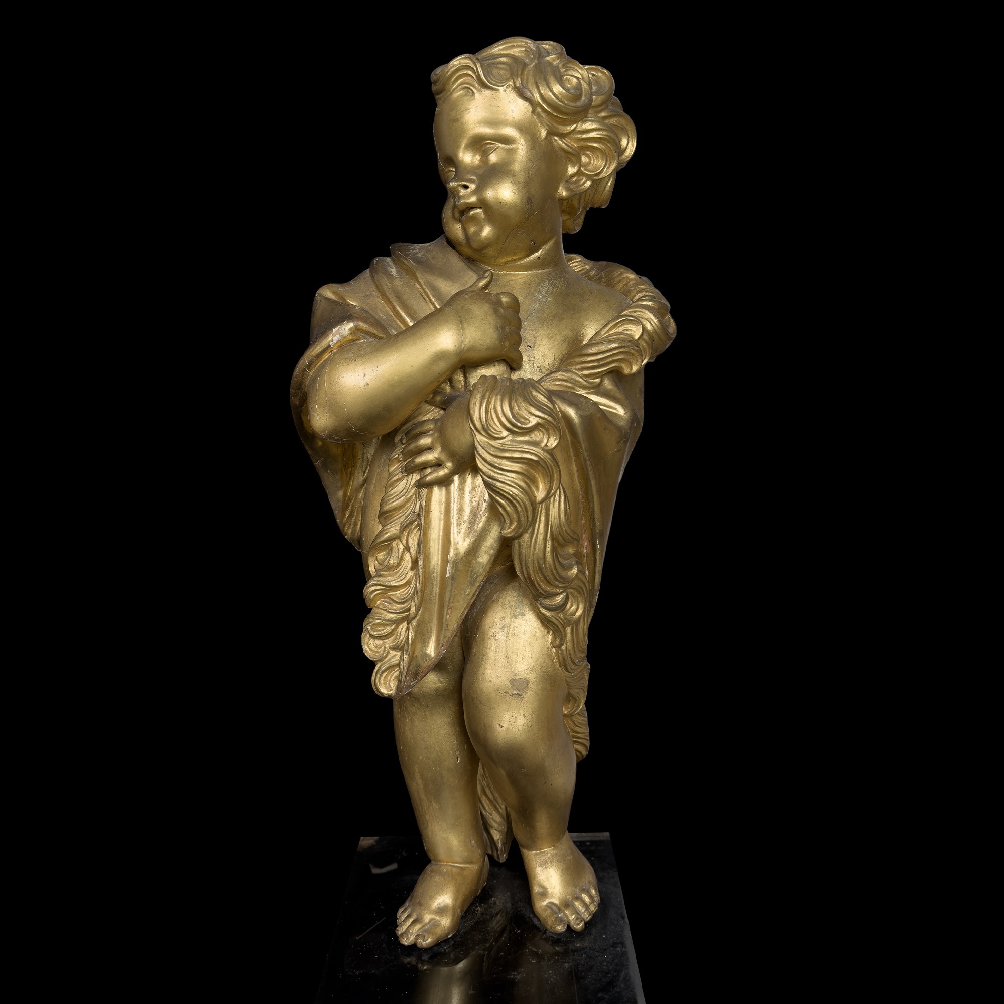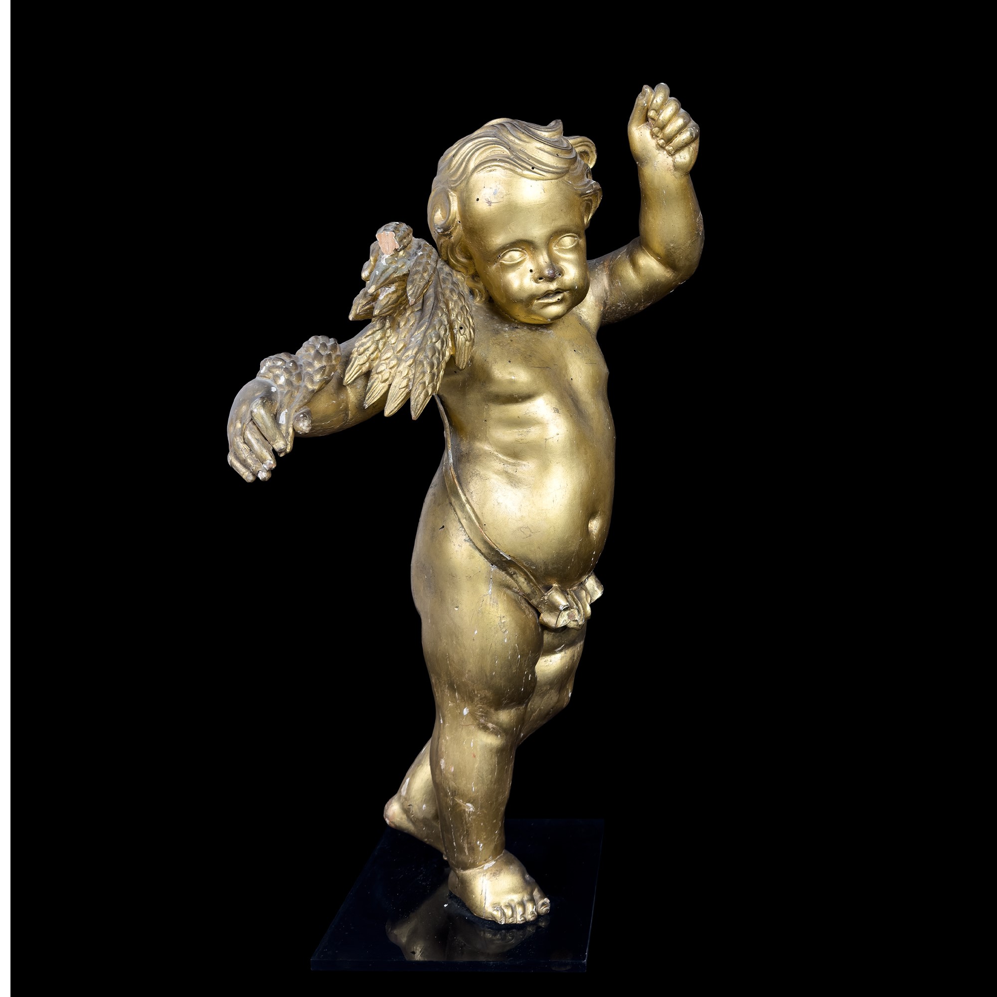 in forma di un putto reso a tuttotondo con gli attributi qualificativi; h. cm. 63