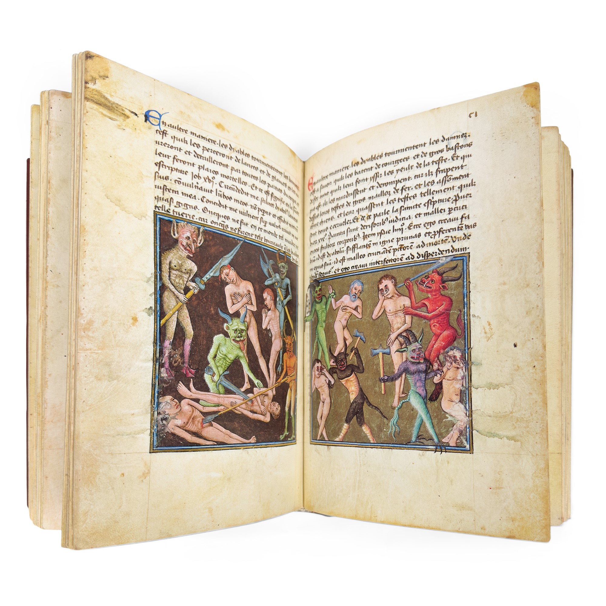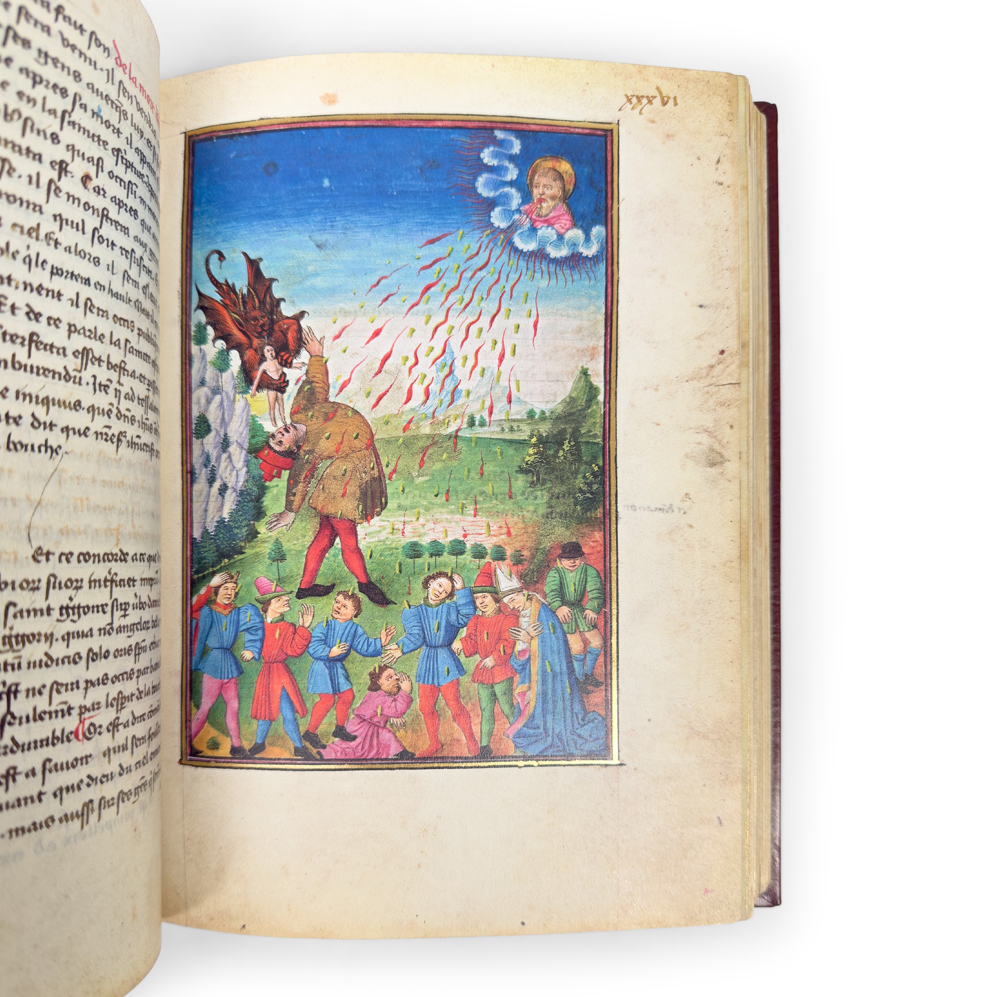 Riproduzione in facsimile del XV sec. di un codice sull'anticristo, il Giudizio Universale, il Paradiso e l'Inferno commissionato dall'ordine dei Certosini del Monastero della grande chartreuse. Formato di cm. 17x24 leg. in piena pelle edit. dentro custodia in tela ed un volume di commento leg. in cartone.