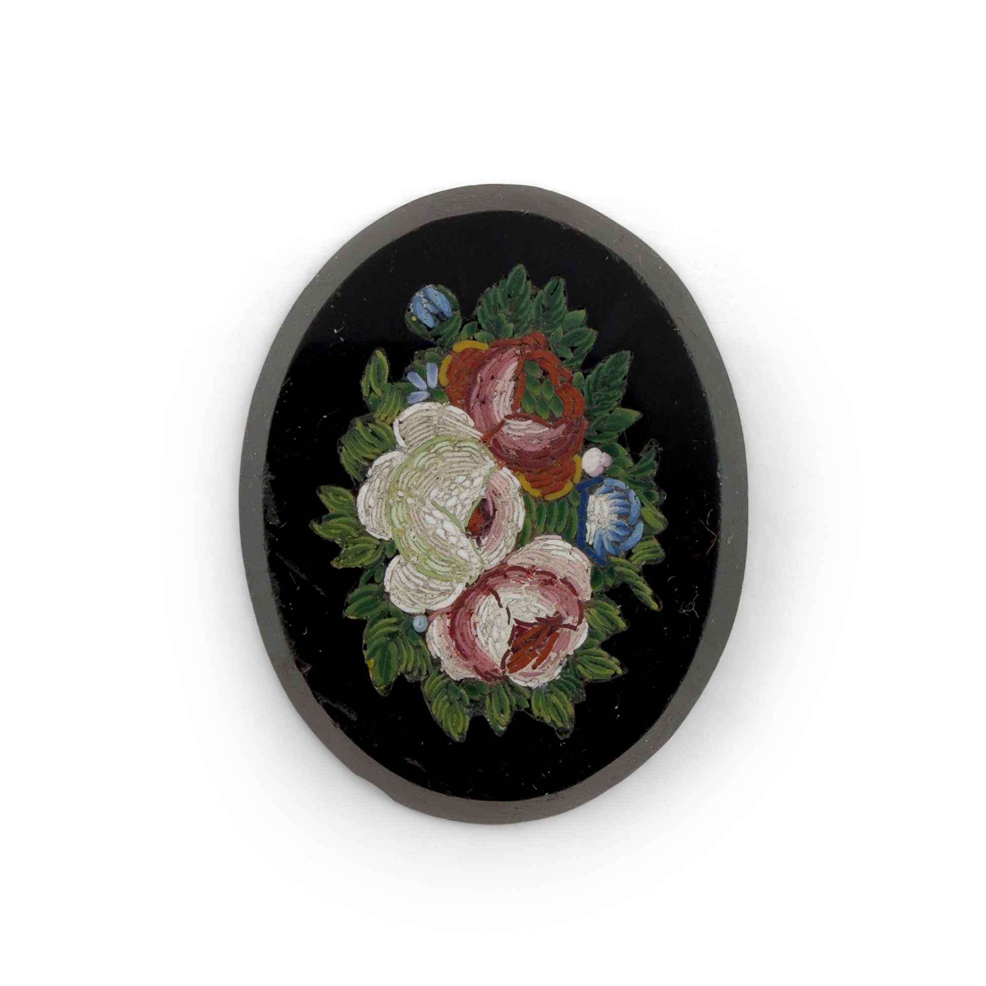 decorata da un micromosaico policromo raffigurante una composizione di fiori, cm. 3x4 (sbeccatura minima lungo il profilo inferiore)