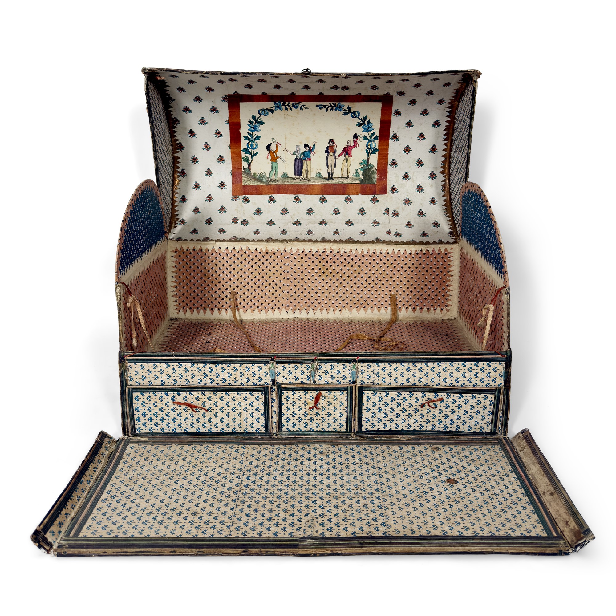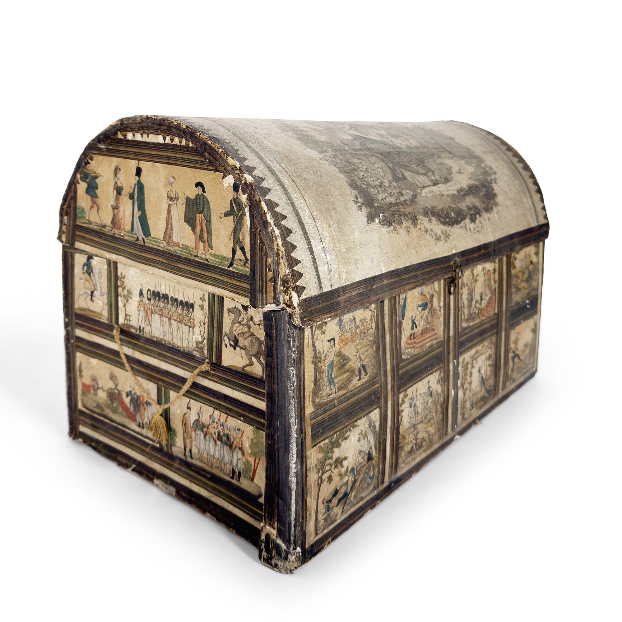 Raro bauletto in cartone pressato, Venezia, XIX secolo