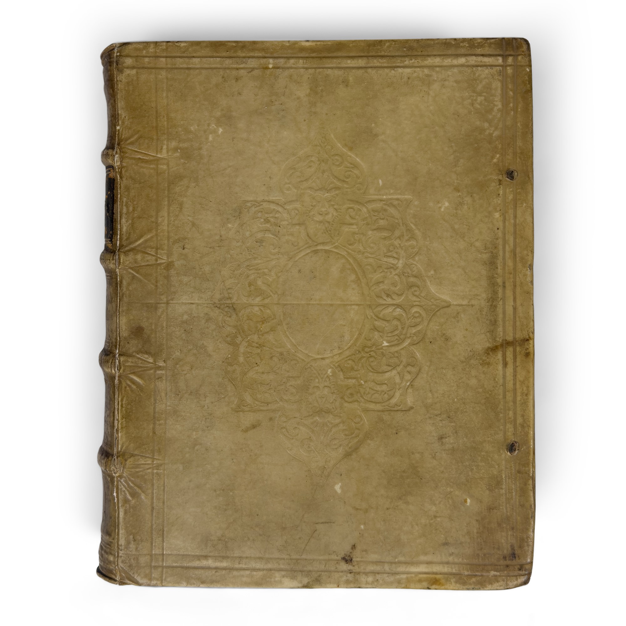 Leg. coeva in p. perg., dorso con cordoni, titolo in oro. Lieve ma uniforme brunitura. Fogli di guardia con strappi e piccole mancanze.