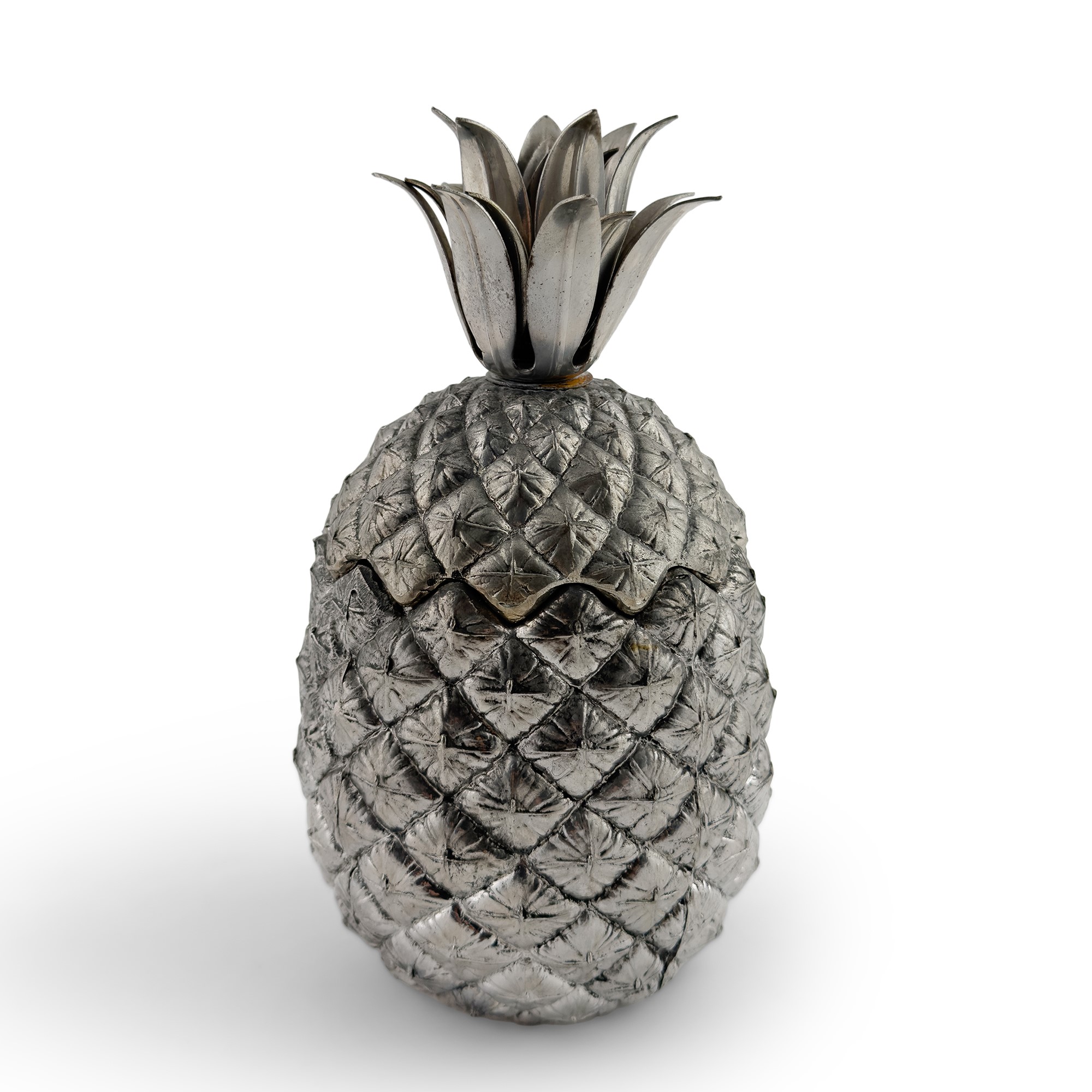 Scatola portaghiaccio in metallo argentato in forma di ananas, Firenze