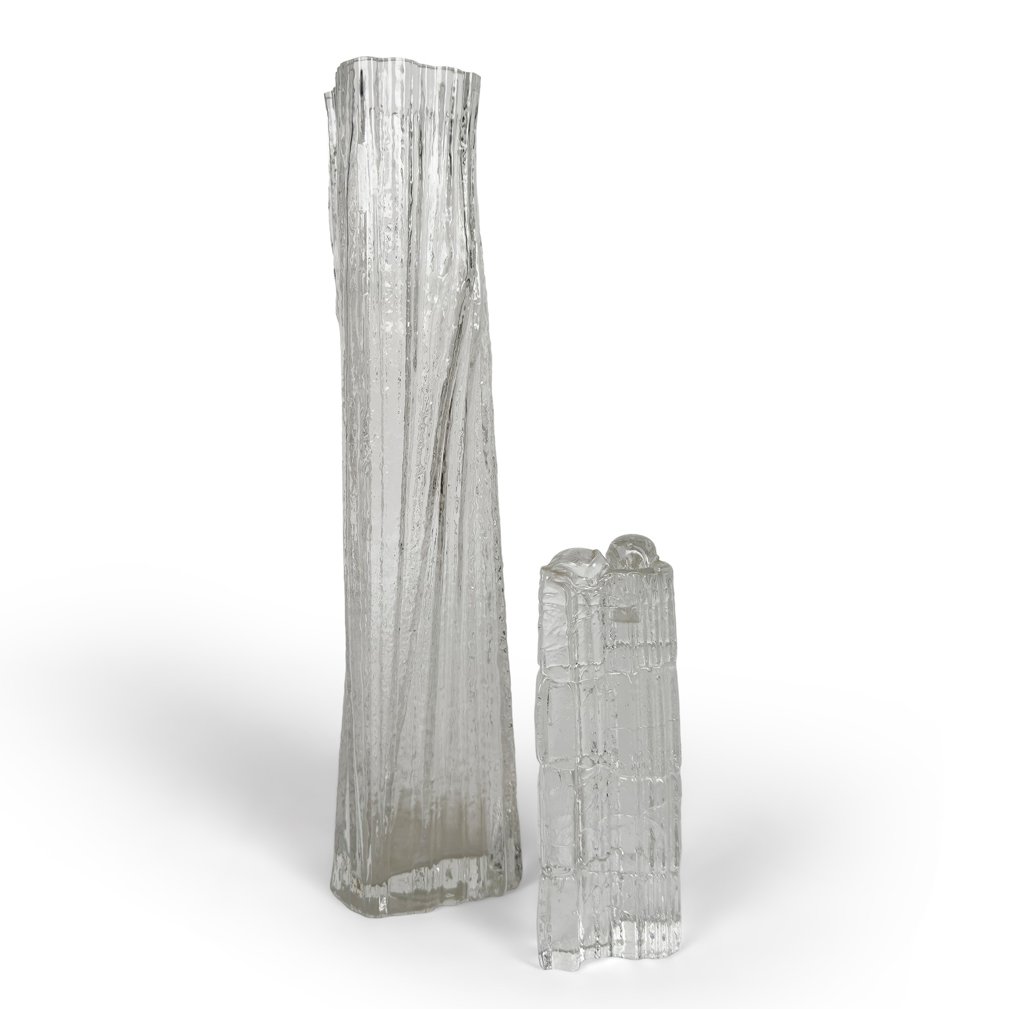 Vaso e candeliere in vetro incolore di similare lavorazione, Martin Freyer per Rosenthal, anni '60