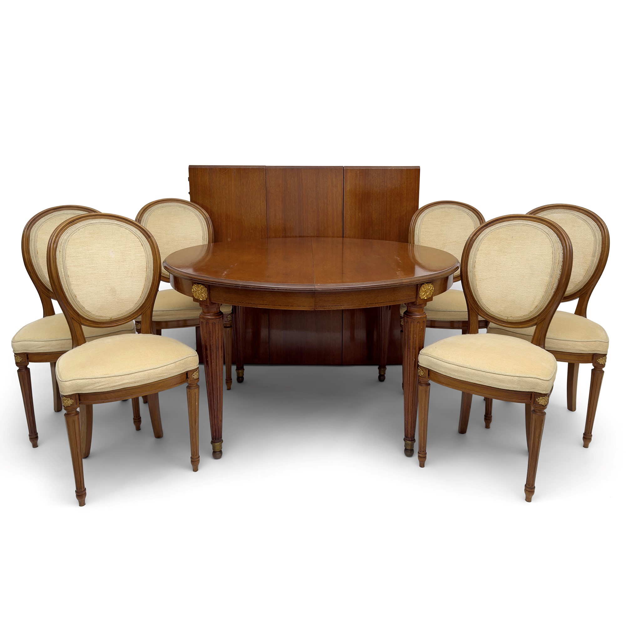 Tavolo impiallacciato in noce UNITO a sei sedie in stile del XVIII secolo