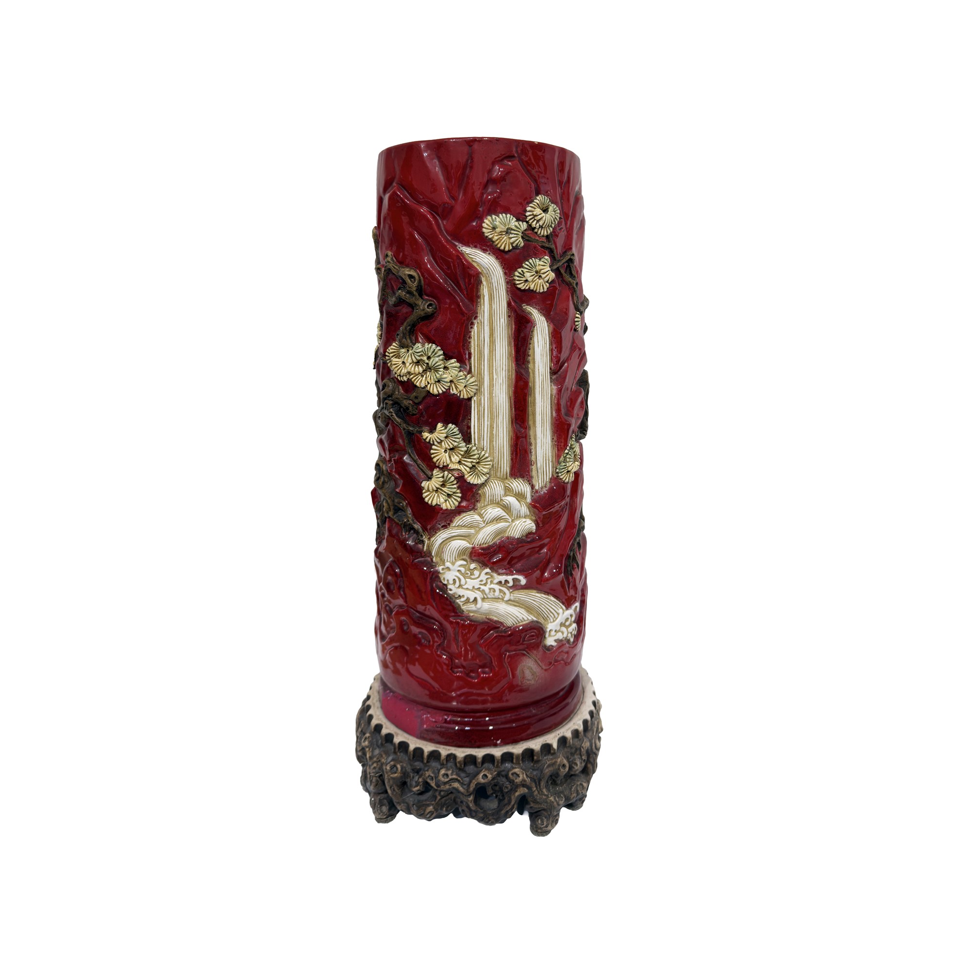 Vaso a cilindro in ceramica rossa e policroma, Arte orientale