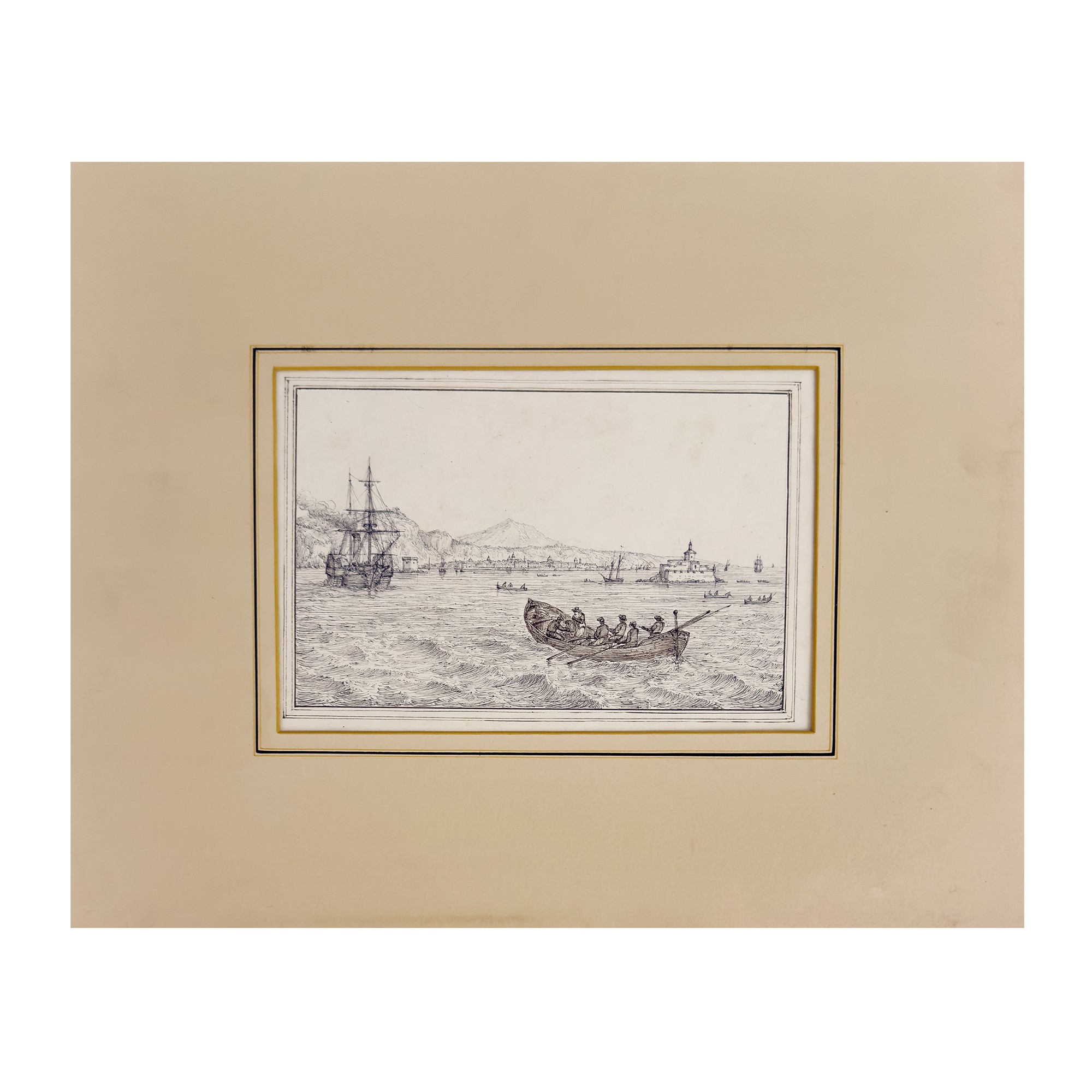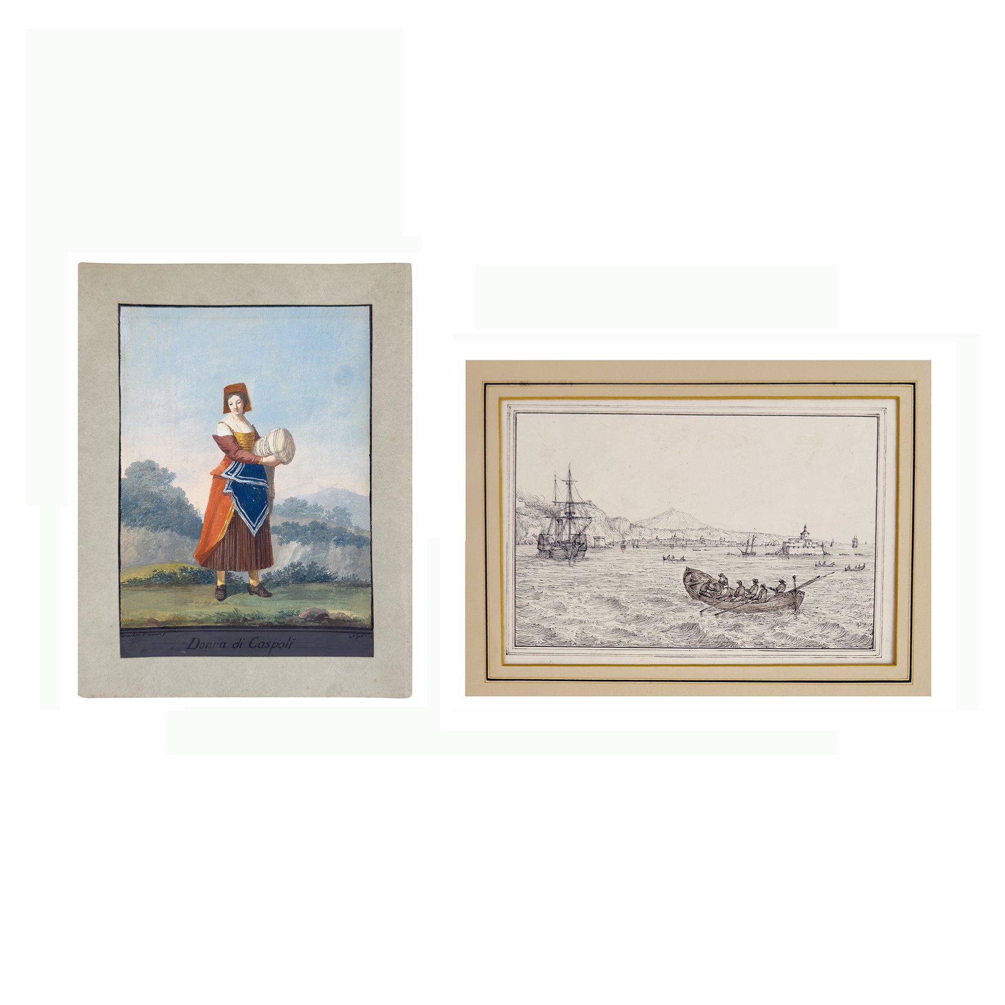 UNITO A un disegno a inchiostro su carta raffigurante una veduta di Trapani da mare, il foglio: cm. 25x34,5