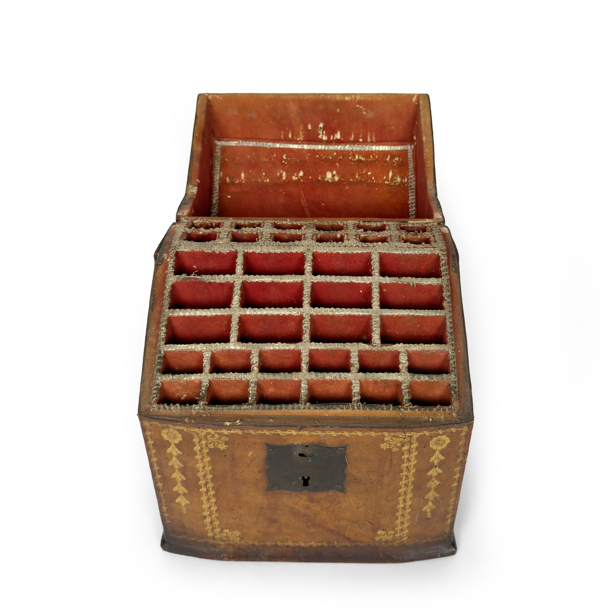Custodia da posate in legno rivestito in cuoio con impressioni in oro, XVIII secolo