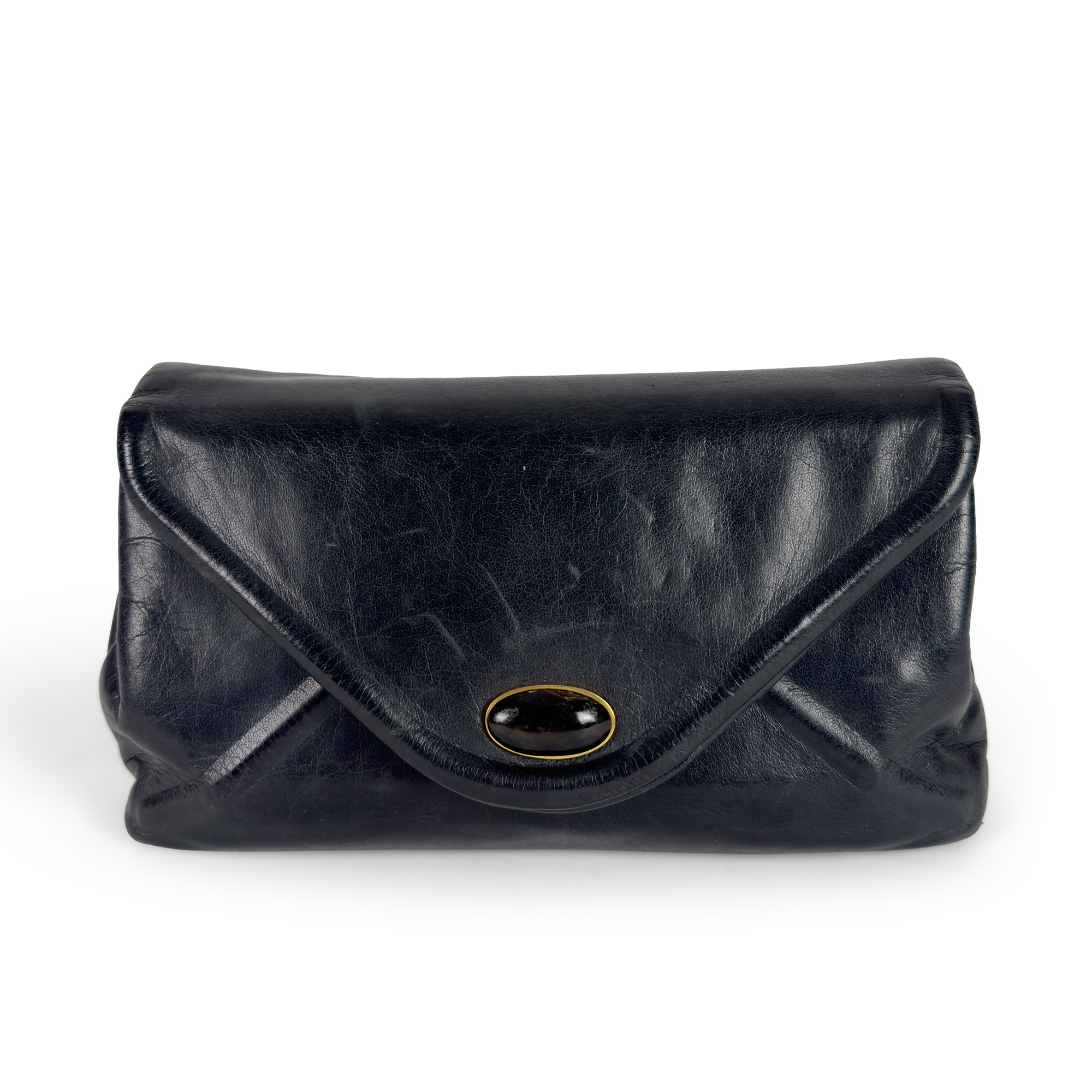 borsetta in pelle blu con chiusura in materiale plastico cabochon.