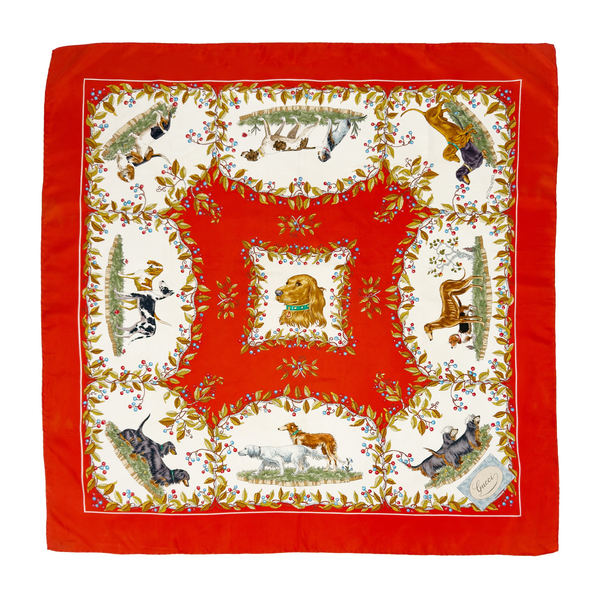 Dogs, foulard in seta a stampa policroma su disegno di Vittorio Accornero, cm. 85x85 circa