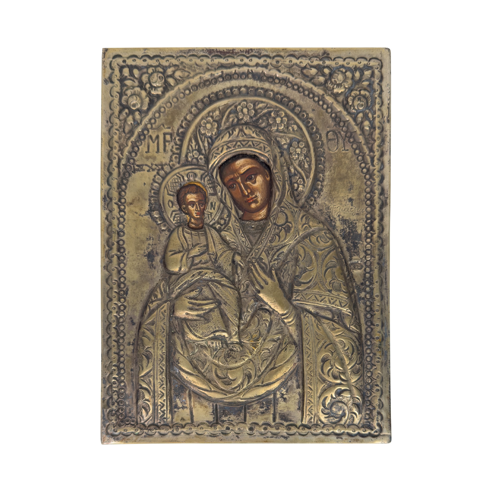 La Vergine col Bambino, icona con riza in metallo dorato, Russia, XIX secolo