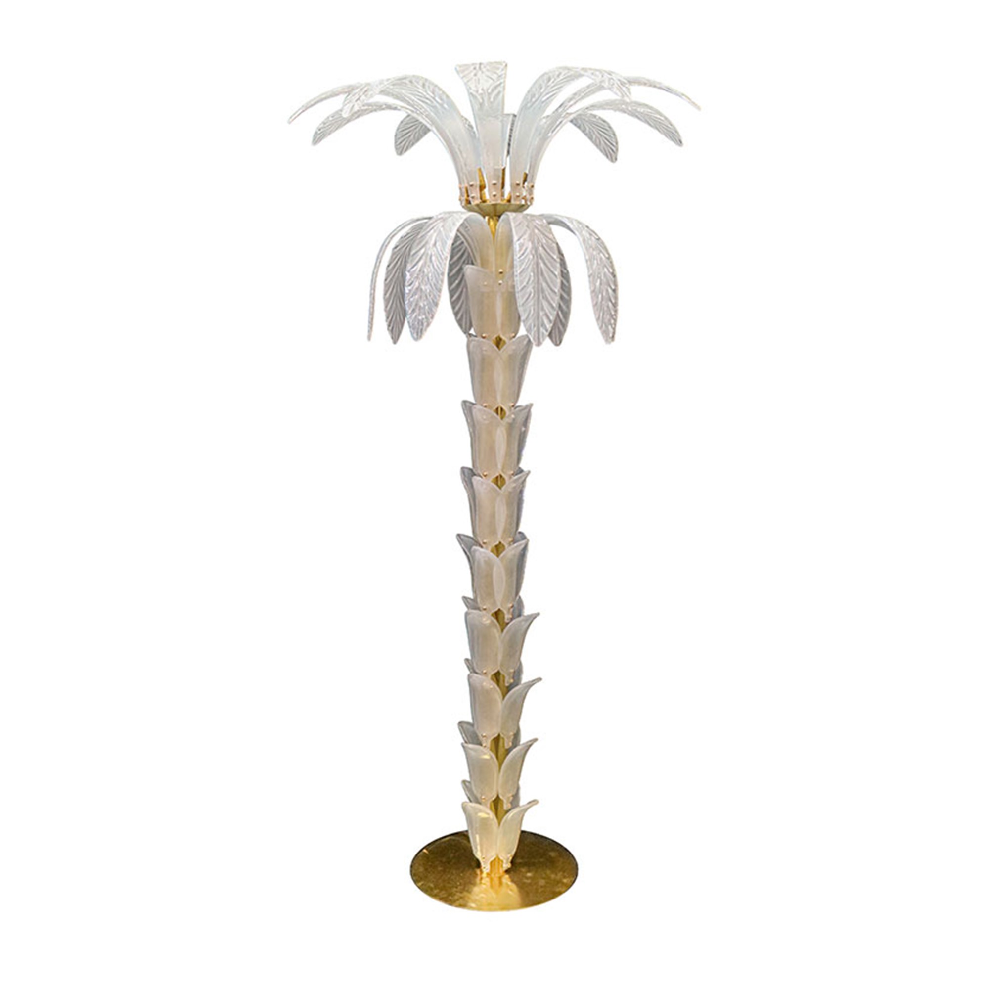Lampada da terra in forma di palma con foglie di vetro bianco, Murano