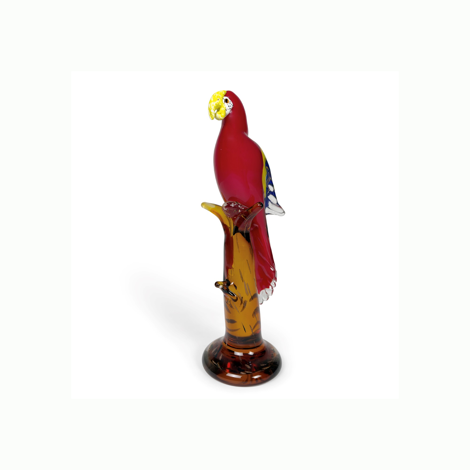 Pappagallo Ara su un trespolo in vetro policromo, Murano
