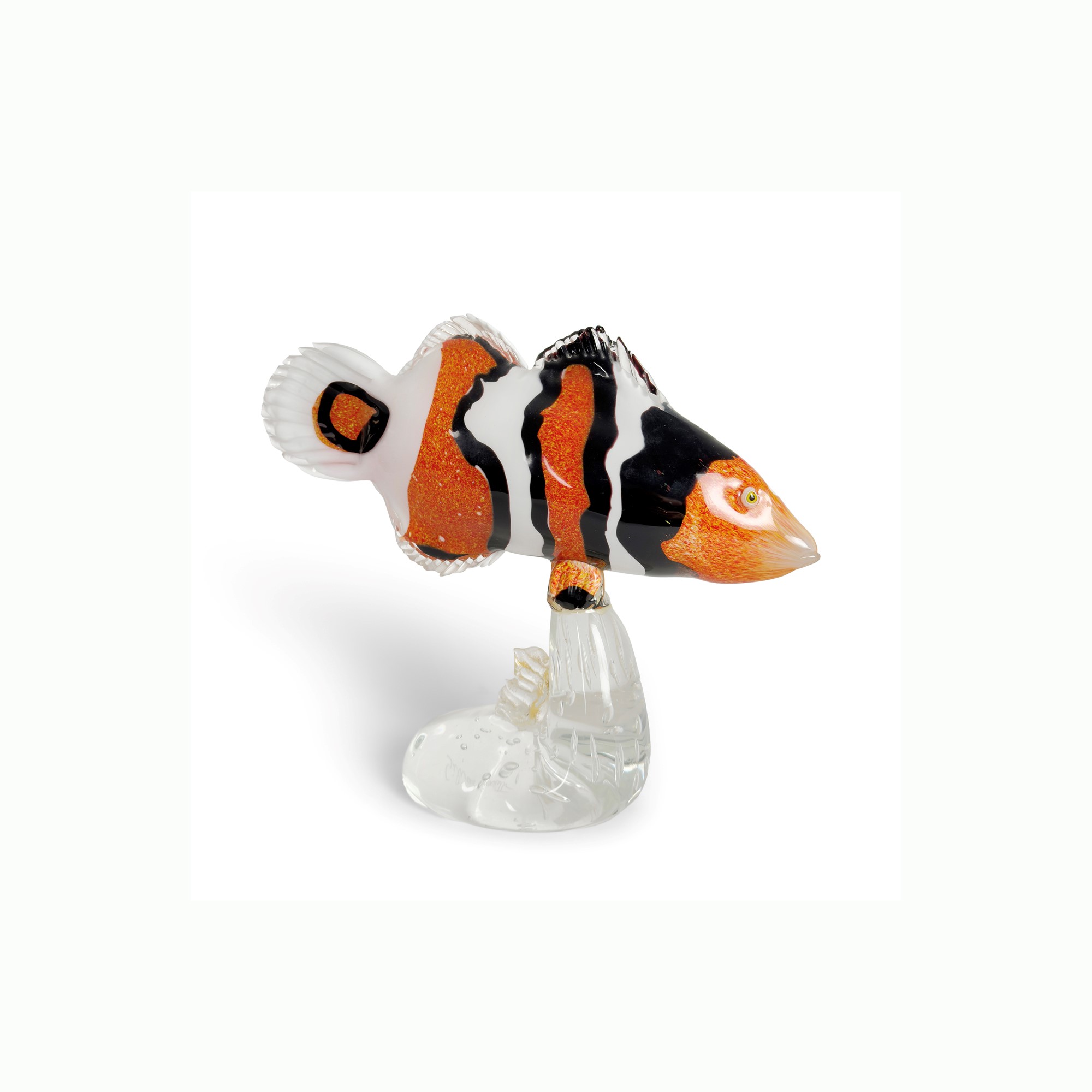 Pesce pagliaccio in vetro incolore e policromo, Murano, Silvano Signoretto