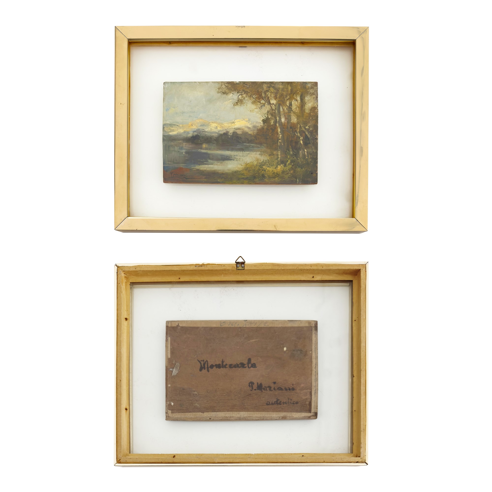 coppia di oli su tavoletta, cm. 10,5x16 circa