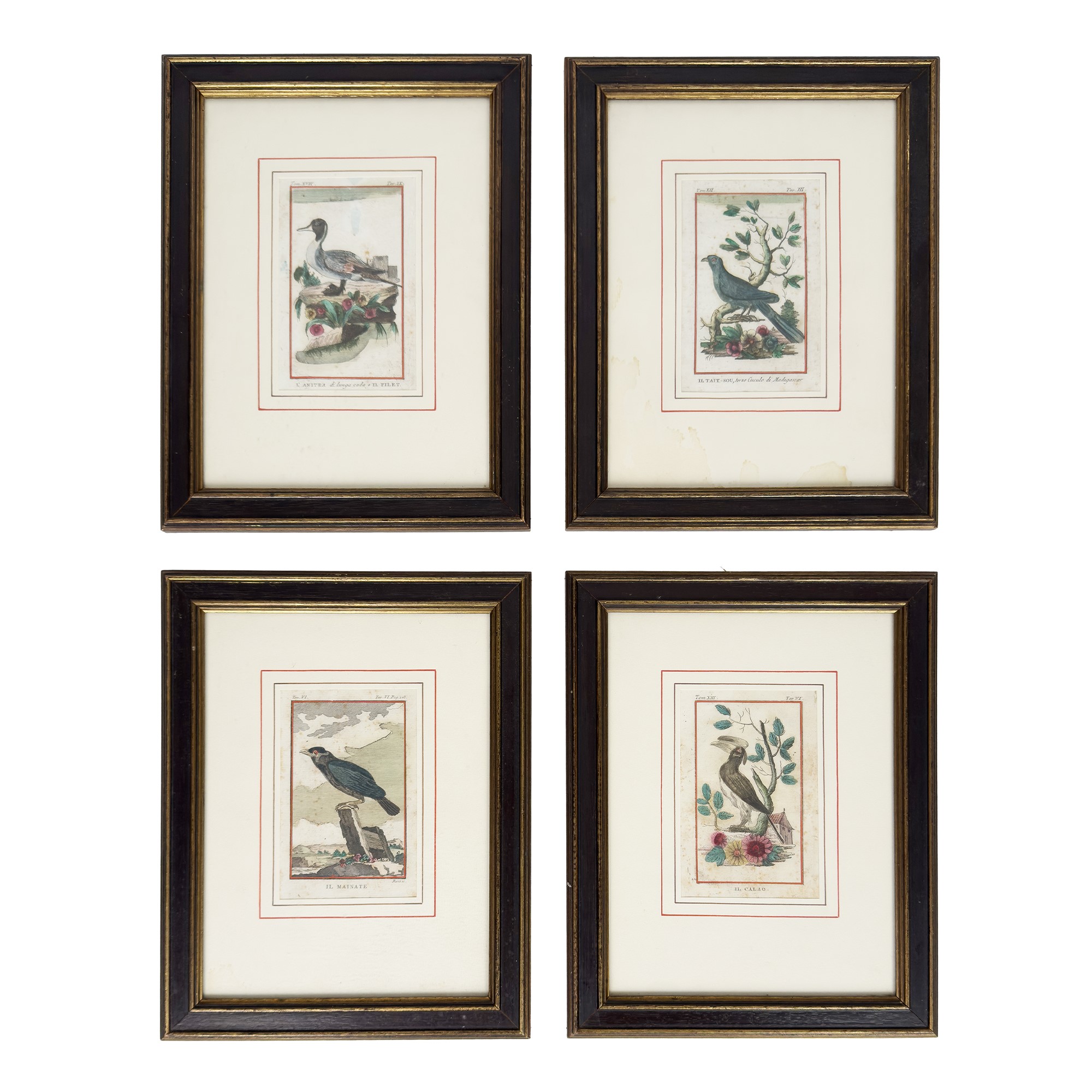 Quatto incisioni ornitologiche acquarellate, XVIII secolo