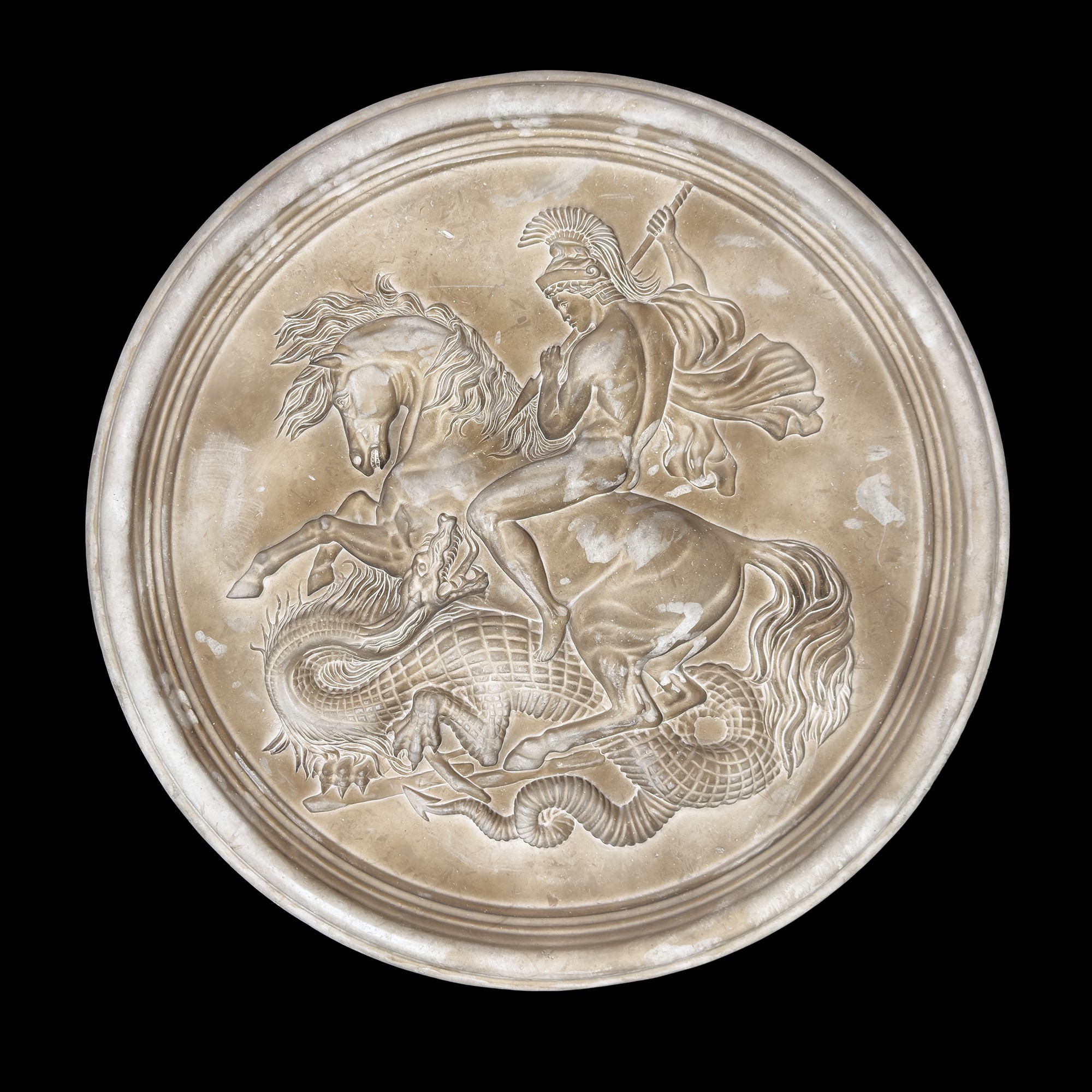 San Giorgio e il drago, grande placca circolare in marmo bianco