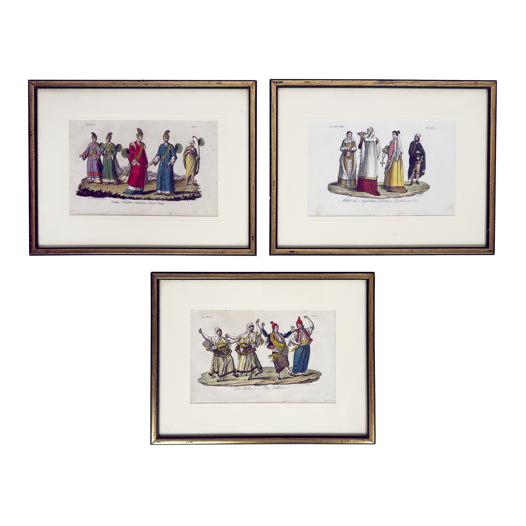 Sei incisioni acquarellate raffiguranti popolazioni del mondo in costumi tipici, XIX secolo