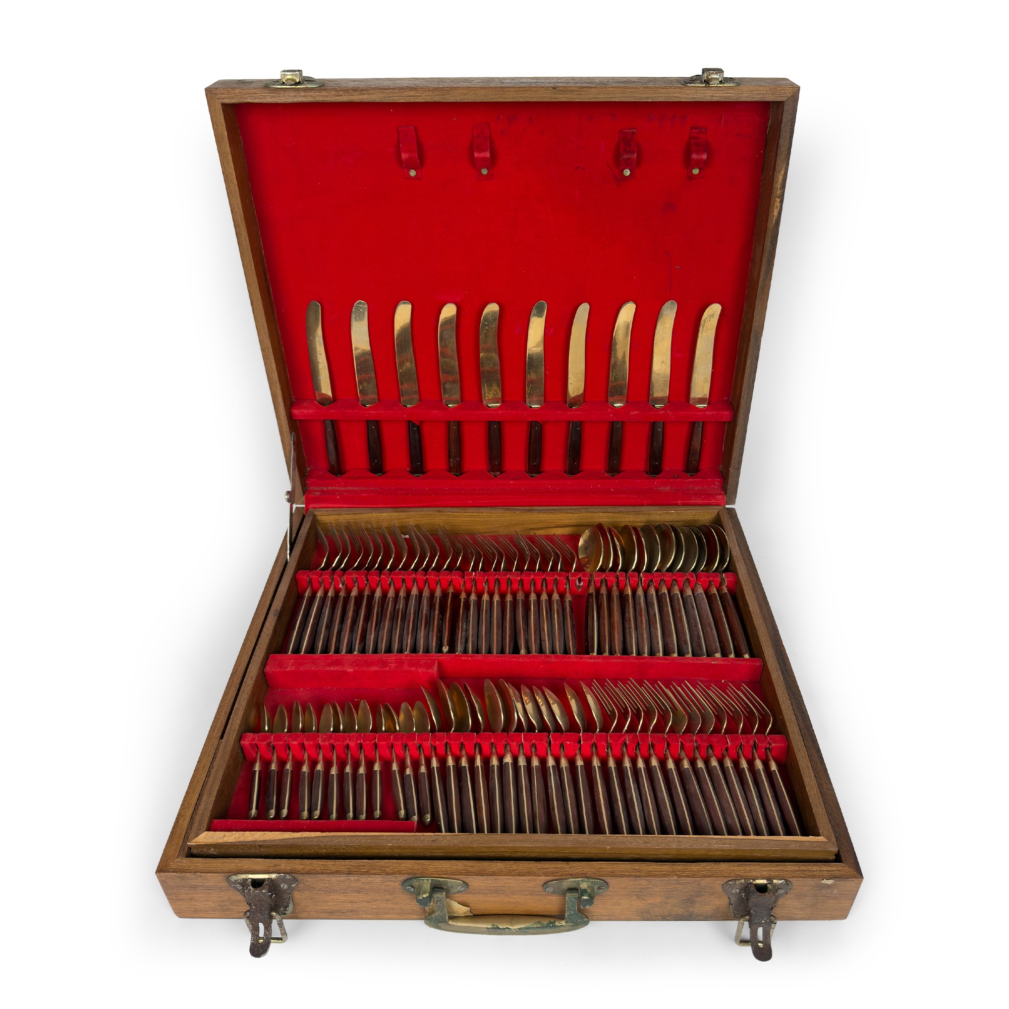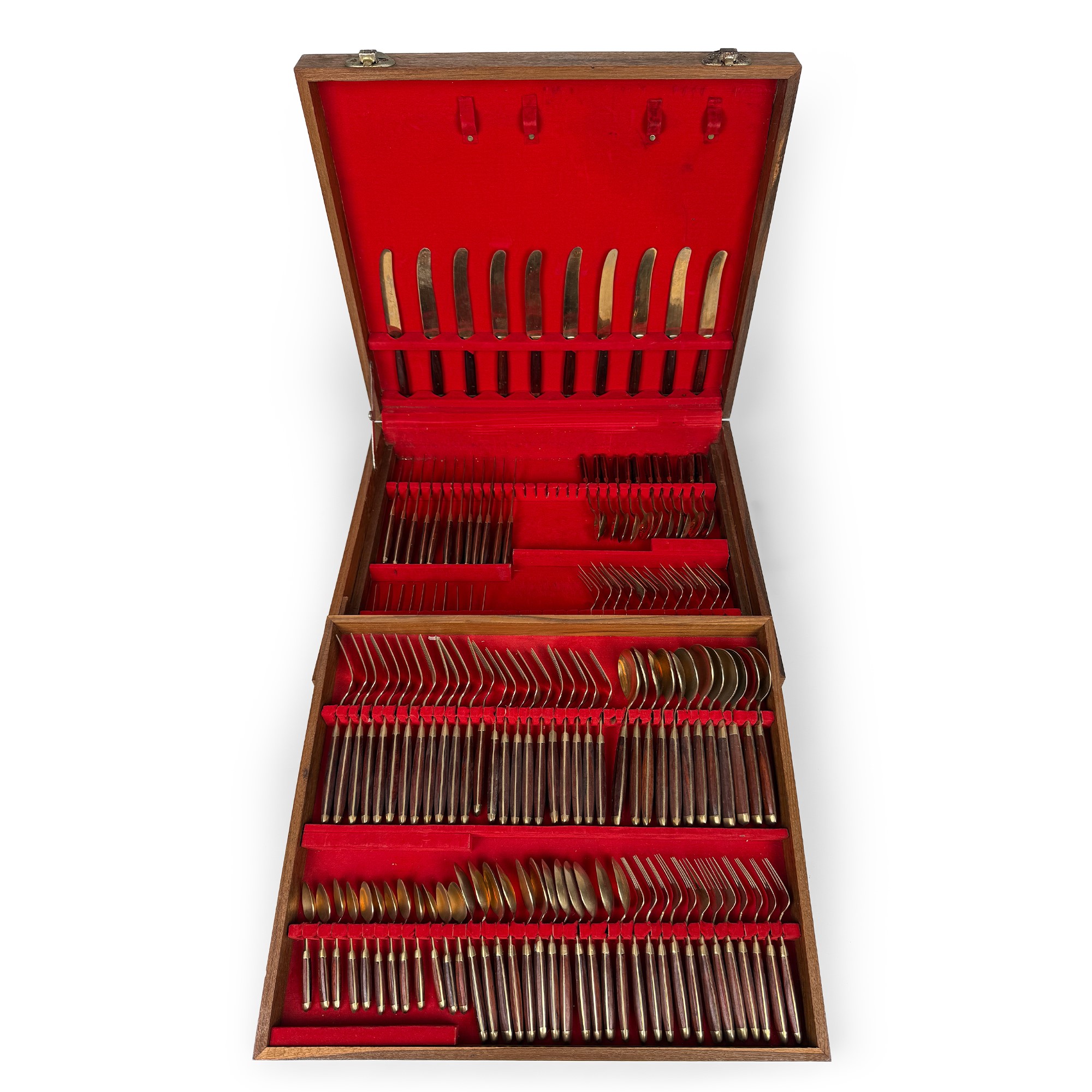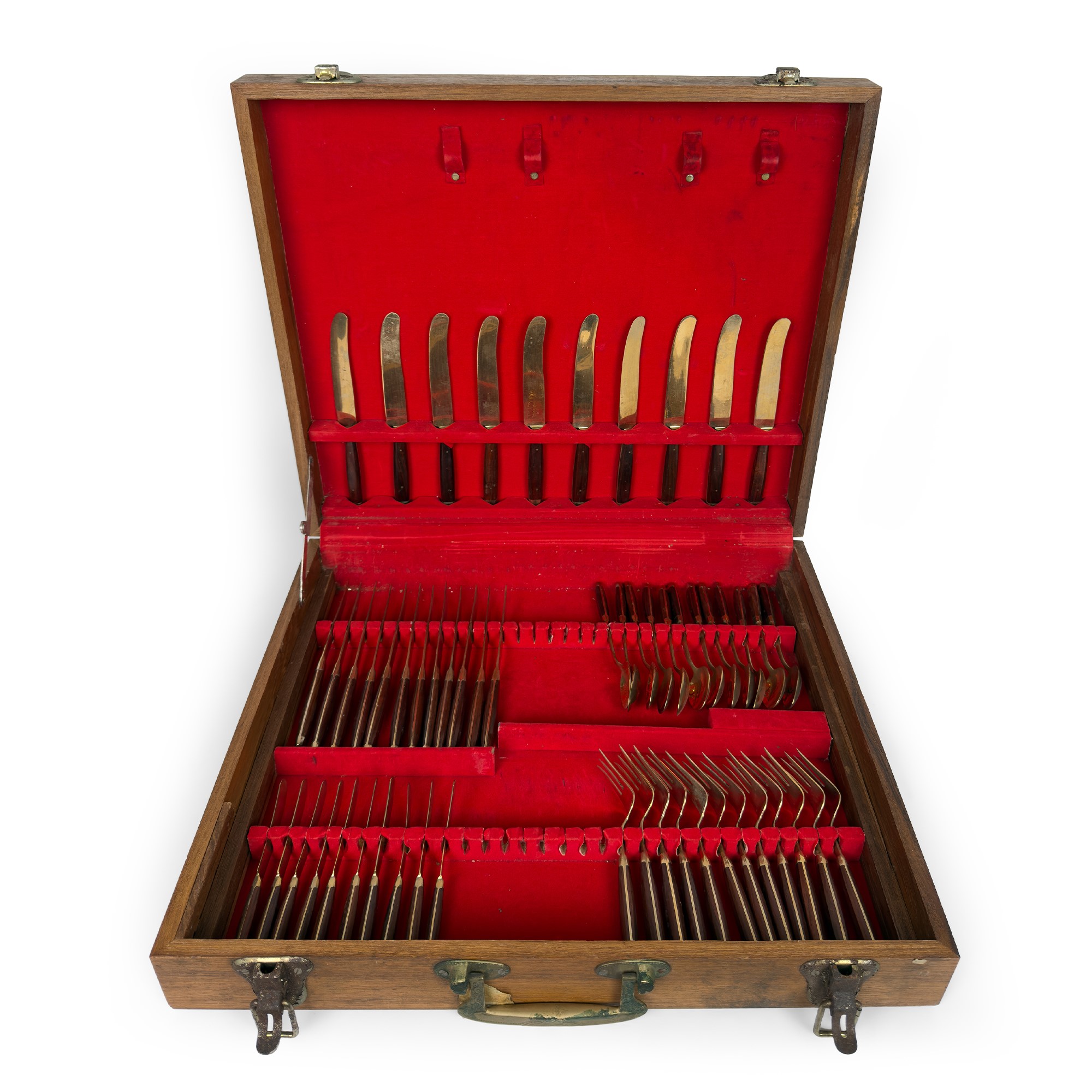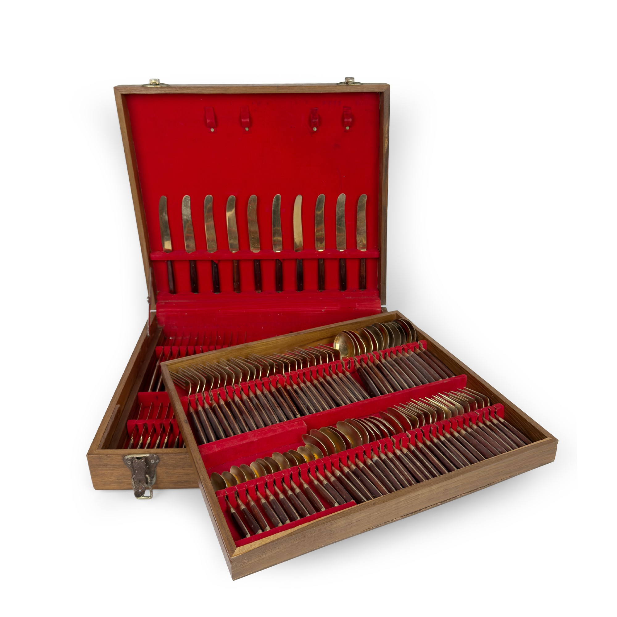 Servizio di posate in legno e metallo dorato