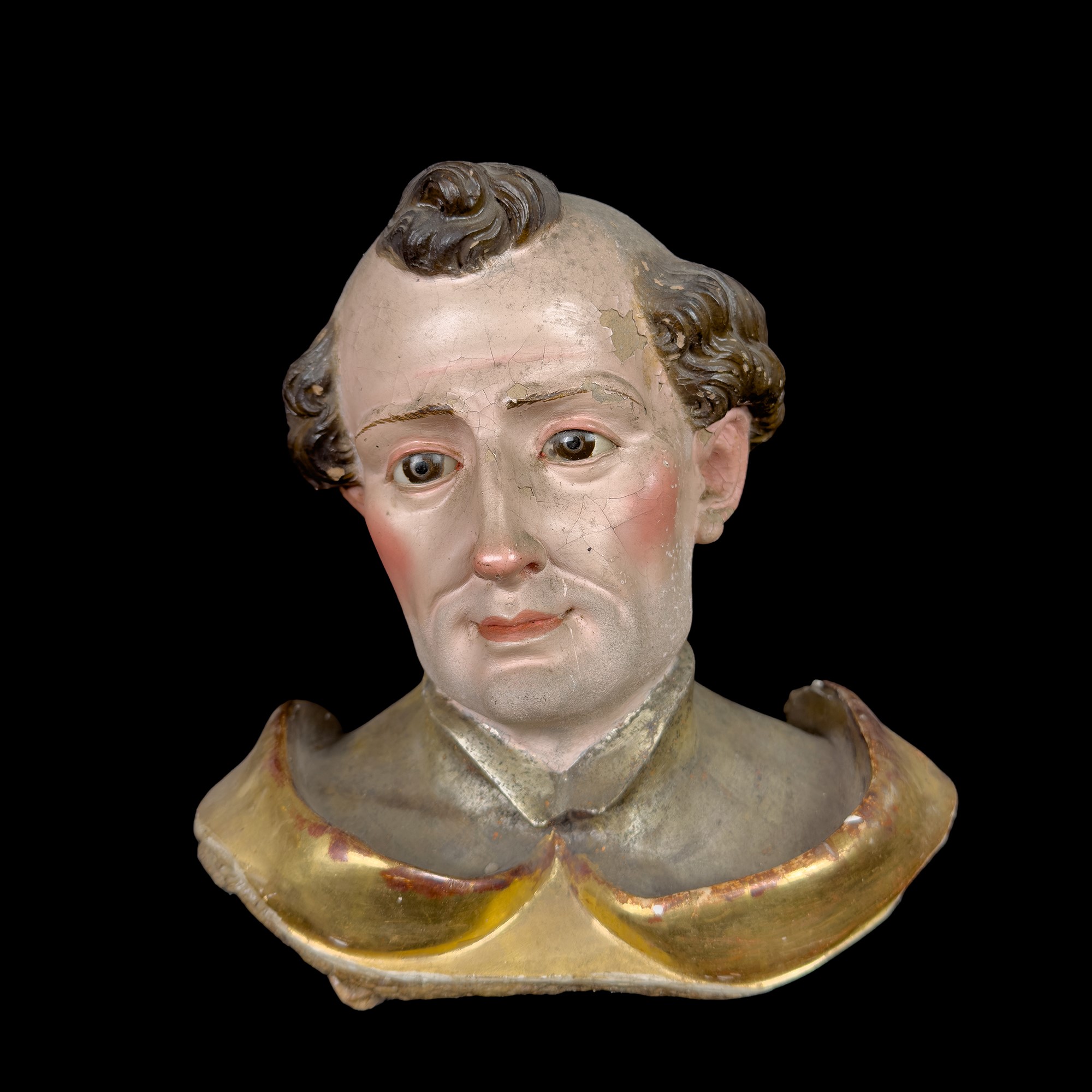 Testa di santo in terracotta policroma e dorata, Napoli, XVIII secolo