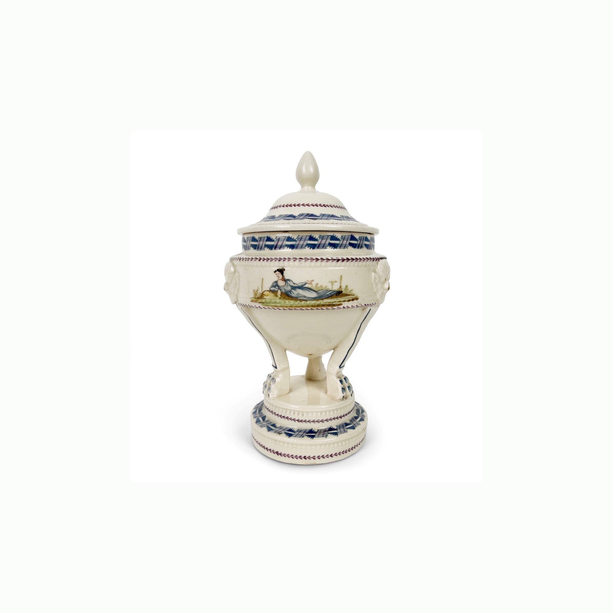 Zuccheriera a tripode con coperchio in terraglia, Napoli, Migliuolo Giustiniani, XIX secolo