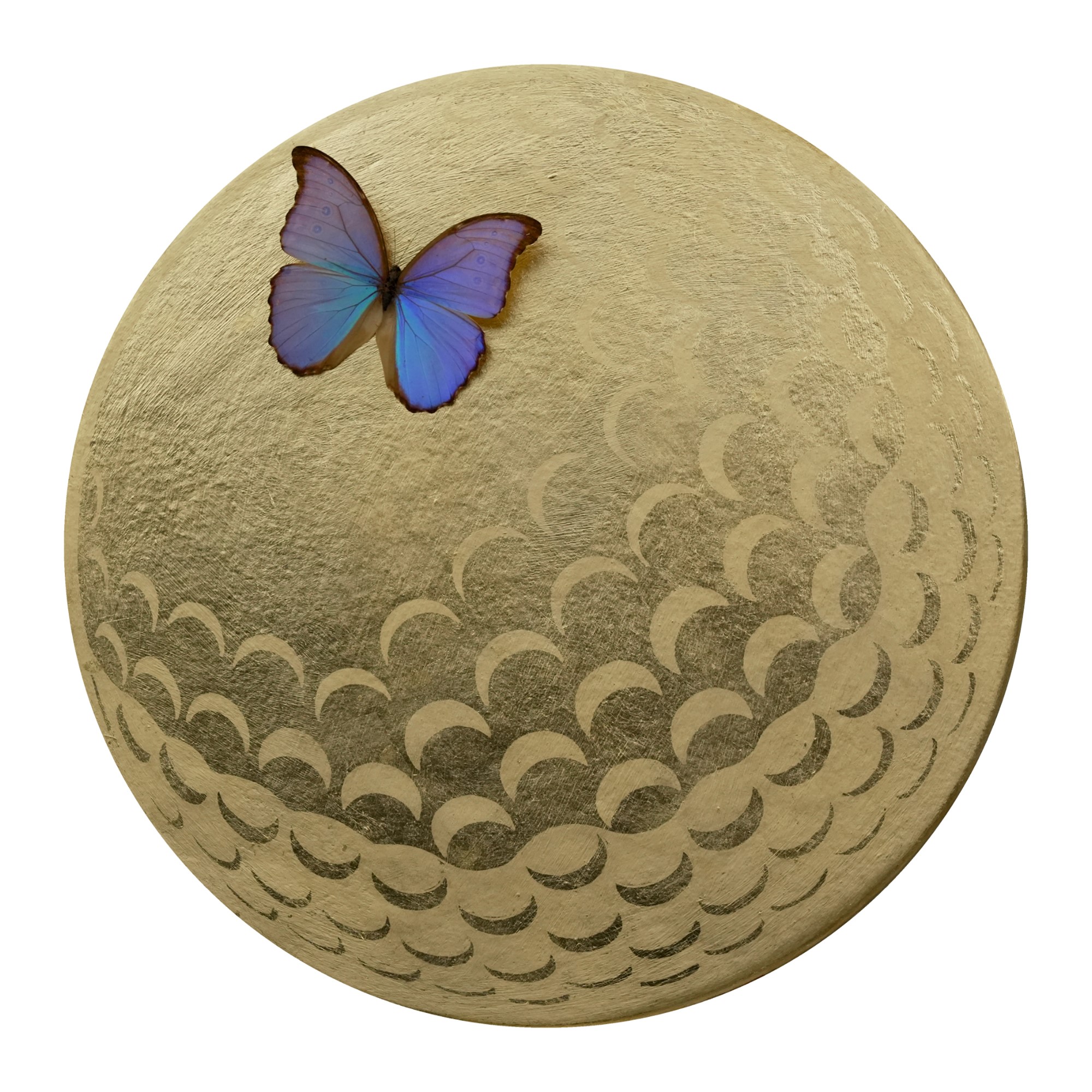 incisione su tavola con foglia d'oro, d. cm. 50