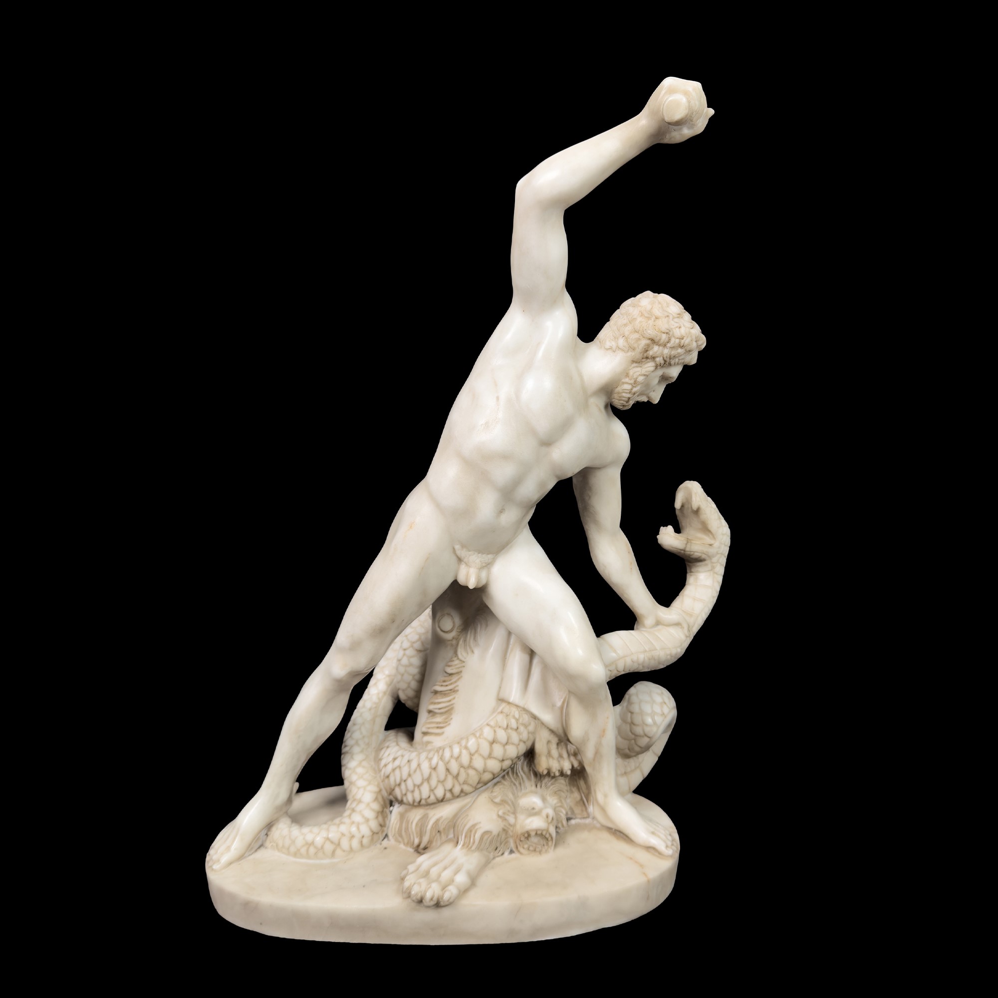 Hercules fighting Achelous transformed into a serpent, group in white marble