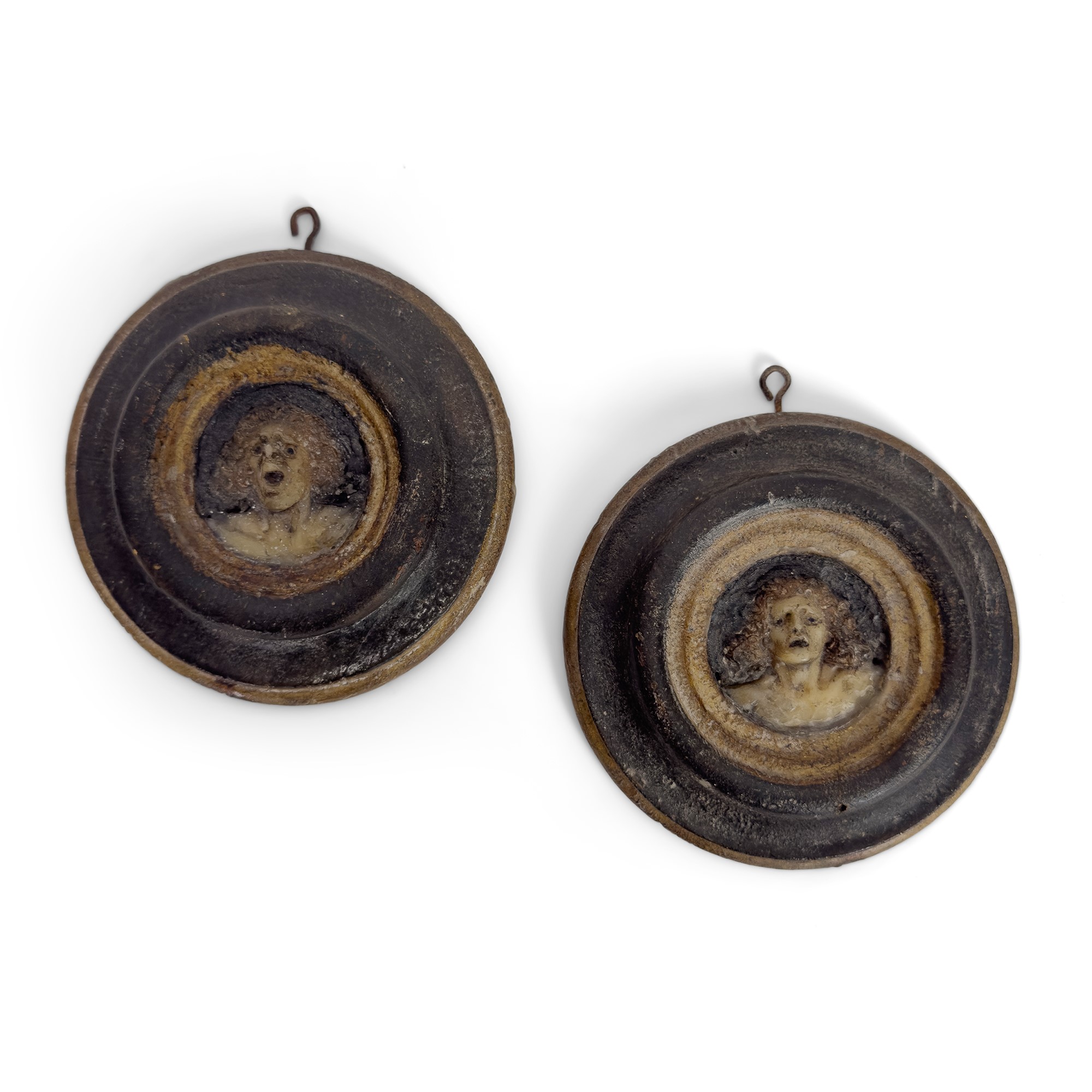 Pair of small polychrome wax medallions, 18th century