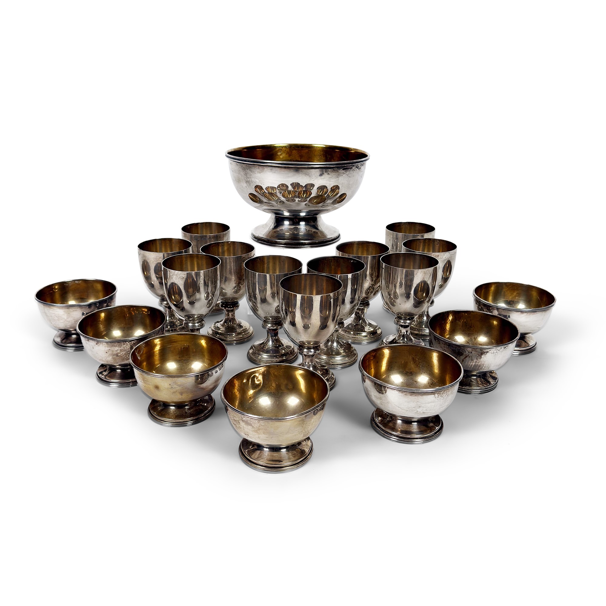 composed of 12 tumblers, 12 fruit cups and 1 bowl; the tumblers: h. 12.5 cm; the cups: 7 x 10 cm; the bowl: 12 x 20 cm; total weight approx. 3,000 g