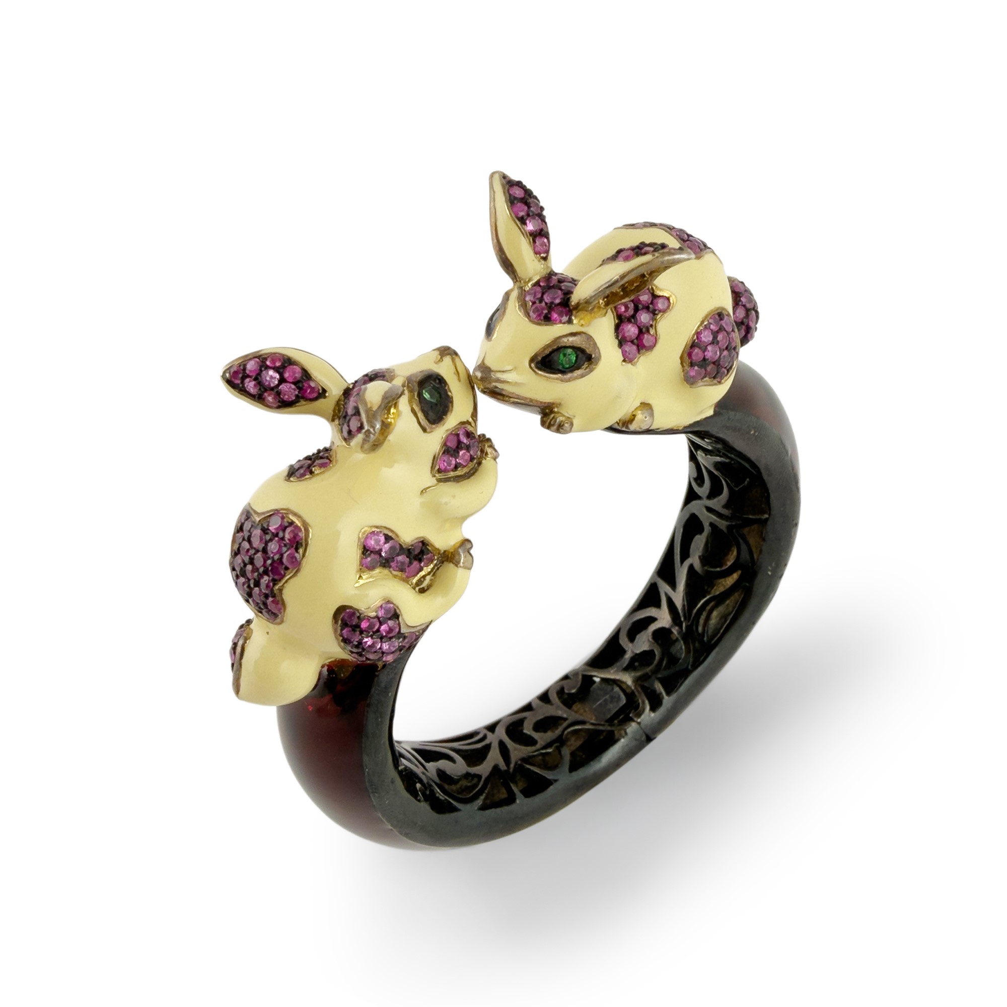 and a clasp shaped as little rabbits embellished with pavé colored stones, d. 7 cm, total weight 103.5 g