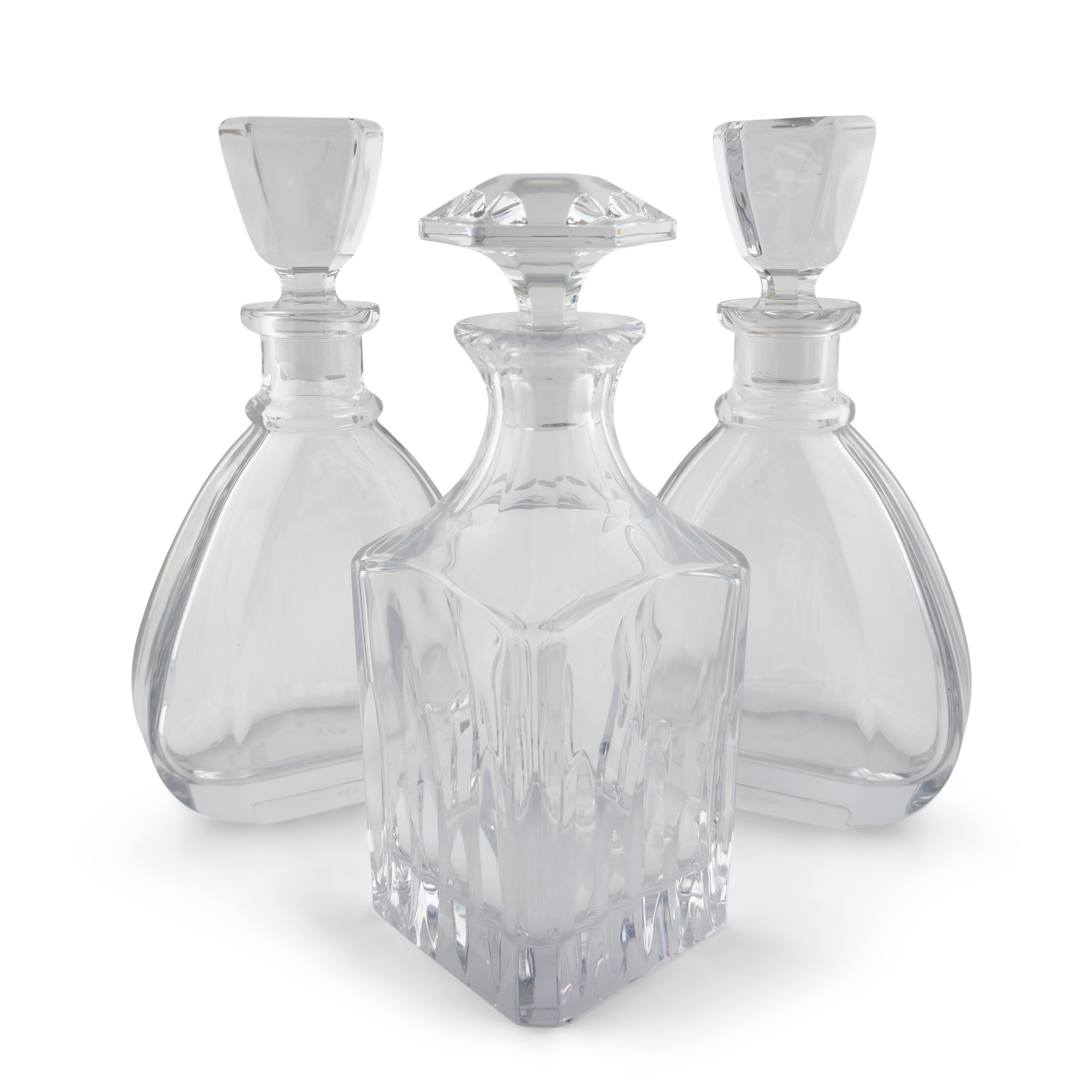 two faceted matching pieces and one square bottle, h. 25 cm; h. 27 cm