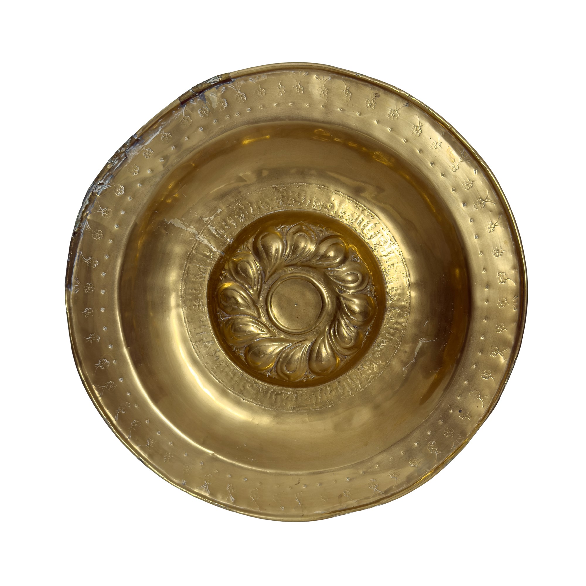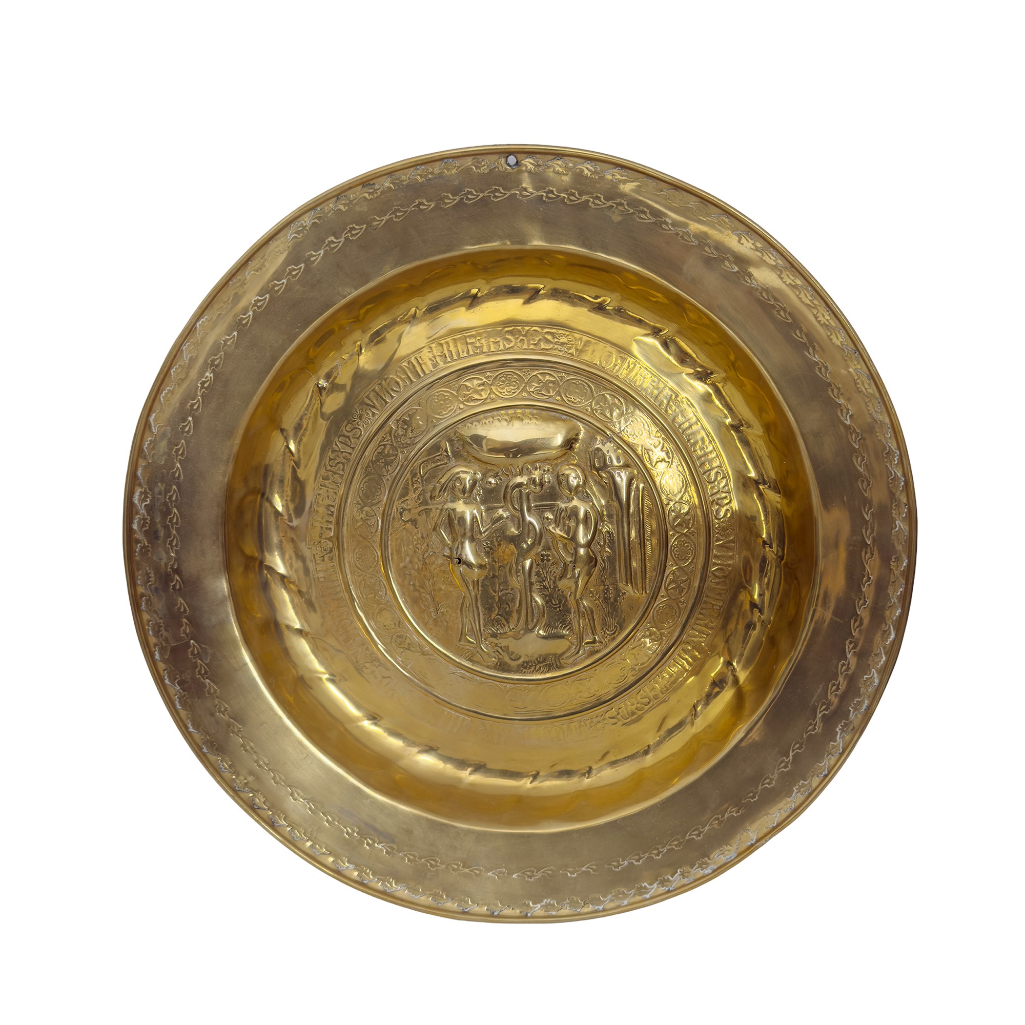 Two alms dishes in gilt brass, 17th century